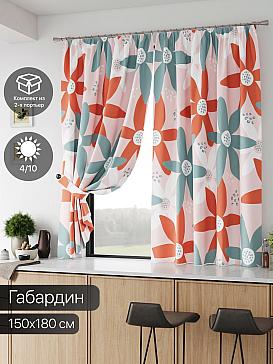Комплект штор из легкой портьерной ткани (габардин) оформлен печатным рисунком. Печатный рисунок дает широкие возможности обновить интерьер фактически нет требуя ремонта за счет огромного выбора. Ткани с печатным рисунком безопасны и не содержат токсичных веществ. Не смотря на то что, материал легкий, он имеет высокую плотность, мало загрязнятся и не требует особого ухода даже после стирки, что важно для кухонных занавесок. Шторы не выцветают, не растягиваются, превосходно драпируются, образуя струящиеся складки. Прекрасное решение для создания красоты и уюта с помощью уникальных дизайнов.