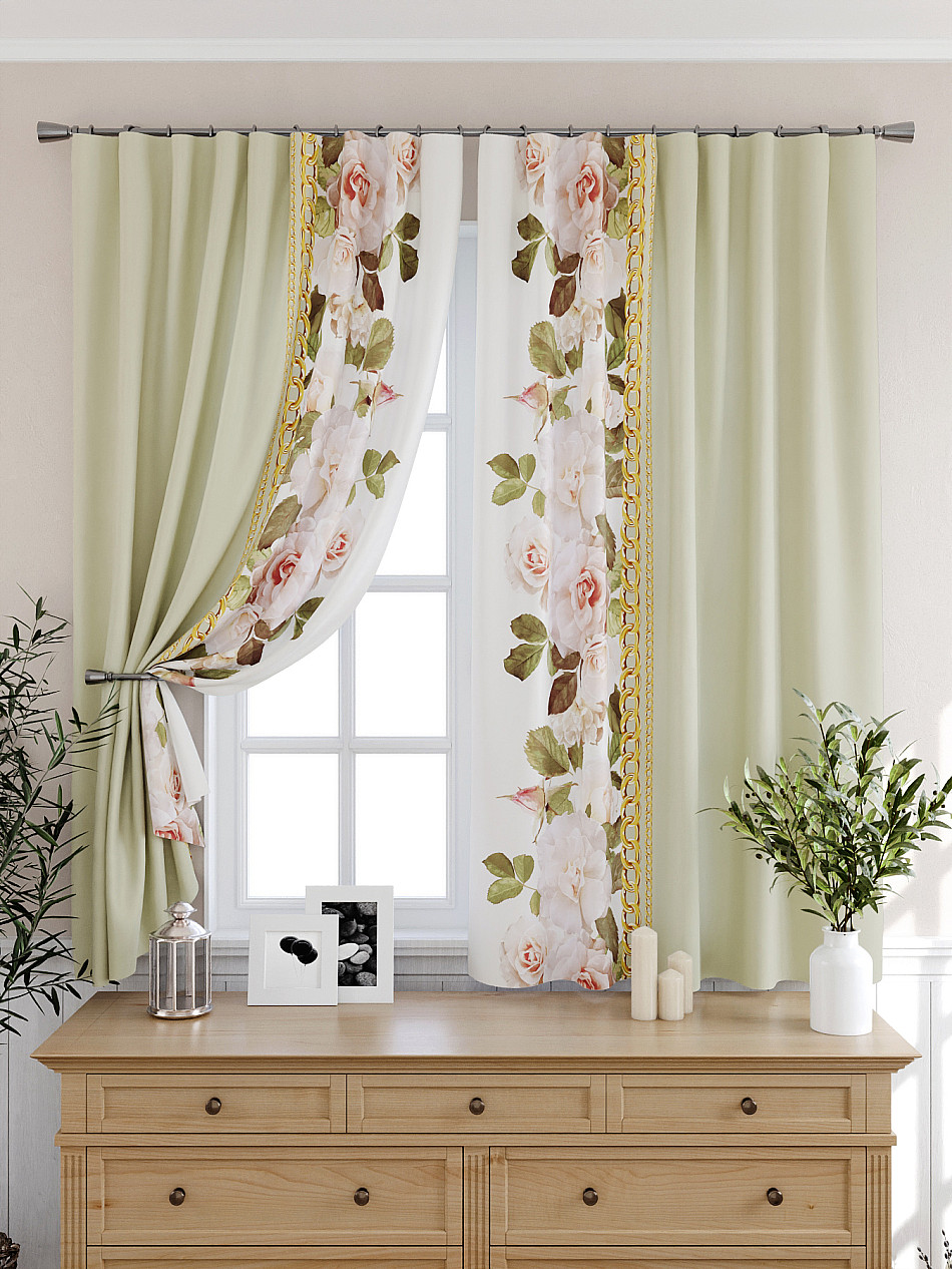 Портьеры 2 шт: Комплект штор из легкой портьерной ткани (габардин) оформлен печатным рисунком. Печатный рисунок дает широкие возможности обновить интерьер фактически нет требуя ремонта за счет огромного выбора. Ткани с печатным рисунком безопасны и не содержат токсичных веществ. Не смотря на то что, материал легкий, он имеет высокую плотность, мало загрязнятся и не требует особого ухода даже после стирки, что важно для кухонных занавесок. Шторы не выцветают, не растягиваются, превосходно драпируются, образуя струящиеся складки. Прекрасное решение для создания красоты и уюта с помощью уникальных дизайнов.