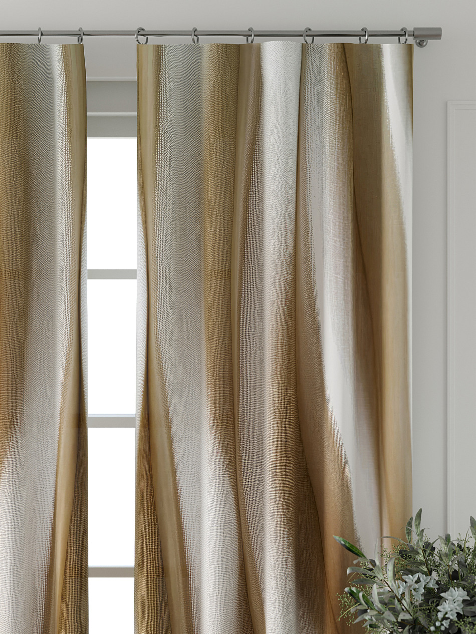 По верхнему краю портьер пришита шторная тесьма 6 см, с ее помощью затянув узелки от кордовых нитей с обеих сторон и стянув их до нужного размера можно сформировать округлые складки, далее вставить крючки в кармашки и повесить на карниз. Обязательно проверьте кордовые нити – они должны быть надежно завязаны, в противном случае во время стягивания они могут вылететь. Шторная тесьма имеет два ряда кармашков, с их помощью можно регулировать не только длину, но и ширину. Такое крепление подходит для всех типов карнизов.