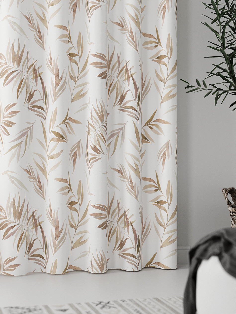 Комплект штор из легкой портьерной ткани (габардин) оформлен печатным рисунком. Печатный рисунок дает широкие возможности обновить интерьер фактически нет требуя ремонта за счет огромного выбора. Ткани с печатным рисунком безопасны и не содержат токсичных веществ. Не смотря на то что, материал легкий, он имеет высокую плотность, мало загрязнятся и не требует особого ухода даже после стирки, что важно для кухонных занавесок. Шторы не выцветают, не растягиваются, превосходно драпируются, образуя струящиеся складки. Прекрасное решение для создания красоты и уюта с помощью уникальных дизайнов.