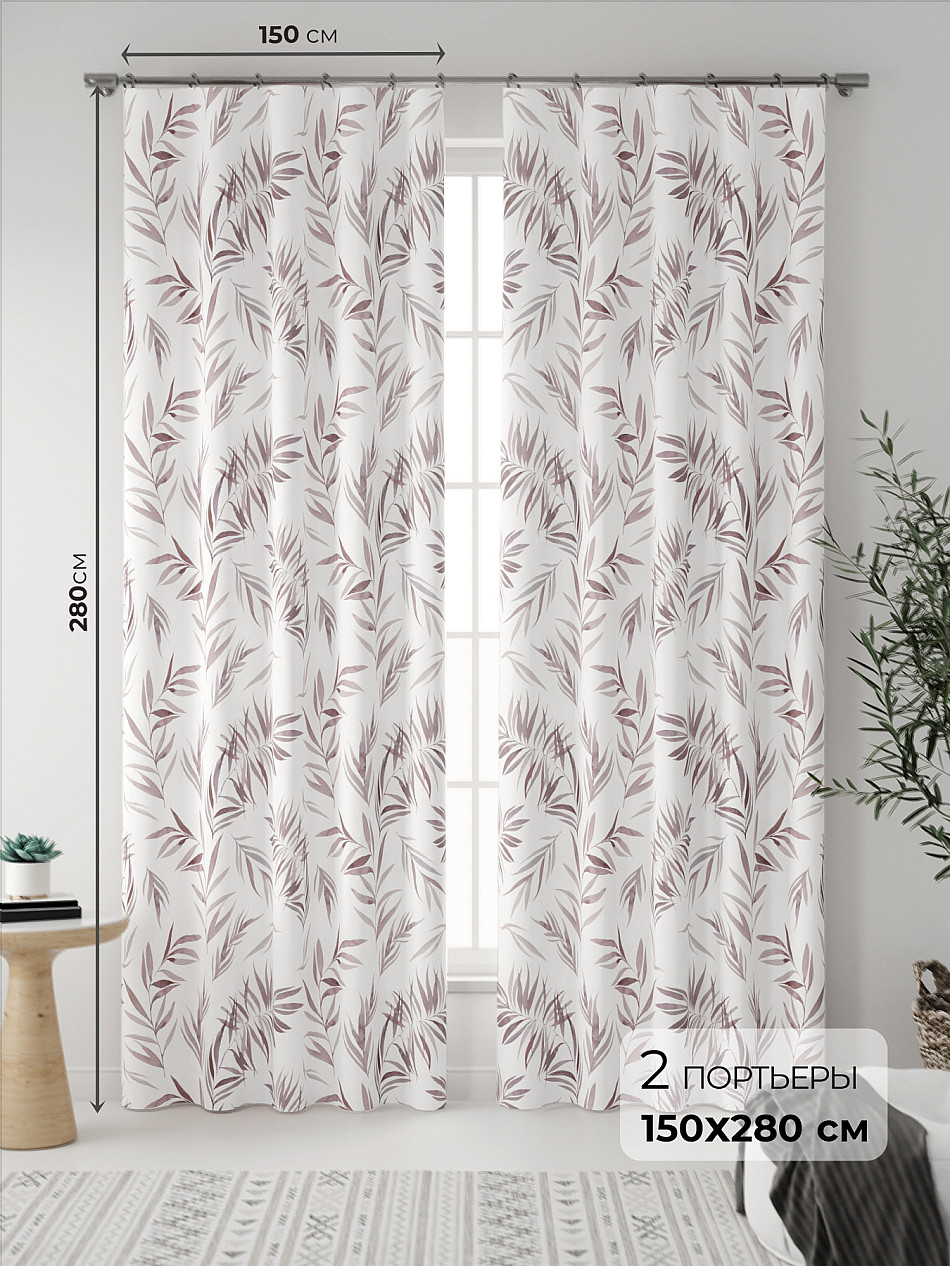 Портьера 2 шт. — 150х280 см. ( Уменьшить высоту ) Крепление: шторная лента (крючки), кулиска Подробнее