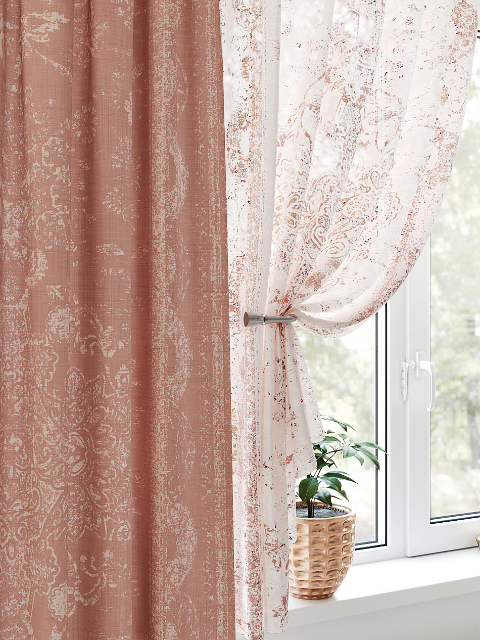 - Состав комплекта Портьера 150х250 см — 1 шт., вуаль 150х180 см — 2 шт.