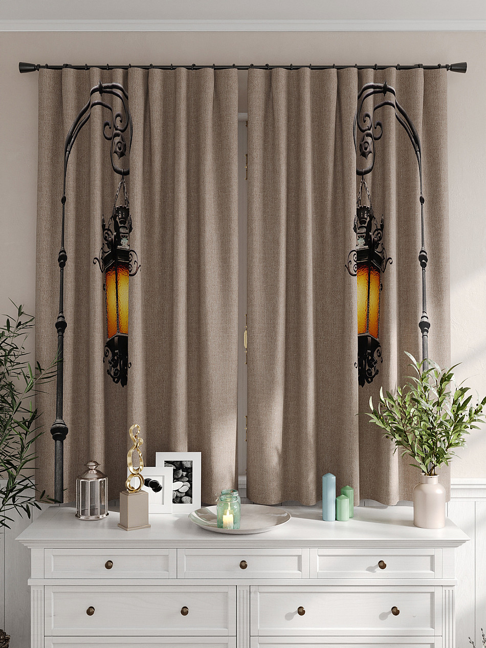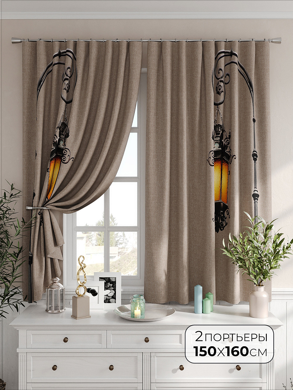 Портьеры 2 шт. Комплект штор из легкой портьерной ткани (габардин) оформлен печатным рисунком. Печатный рисунок дает широкие возможности обновить интерьер фактически не требуя ремонта за счет огромного выбора. Ткани с печатным рисунком безопасны и не содержат токсичных веществ. Не смотря на то, что материал легкий, он имеет высокую плотность, мало загрязнятся и не требует особого ухода даже после стирки, что важно для кухонных занавесок. Шторы не выцветают, не растягиваются, превосходно драпируются, образуя струящиеся складки. Прекрасное решение для создания красоты и уюта с помощью уникальных дизайнов.