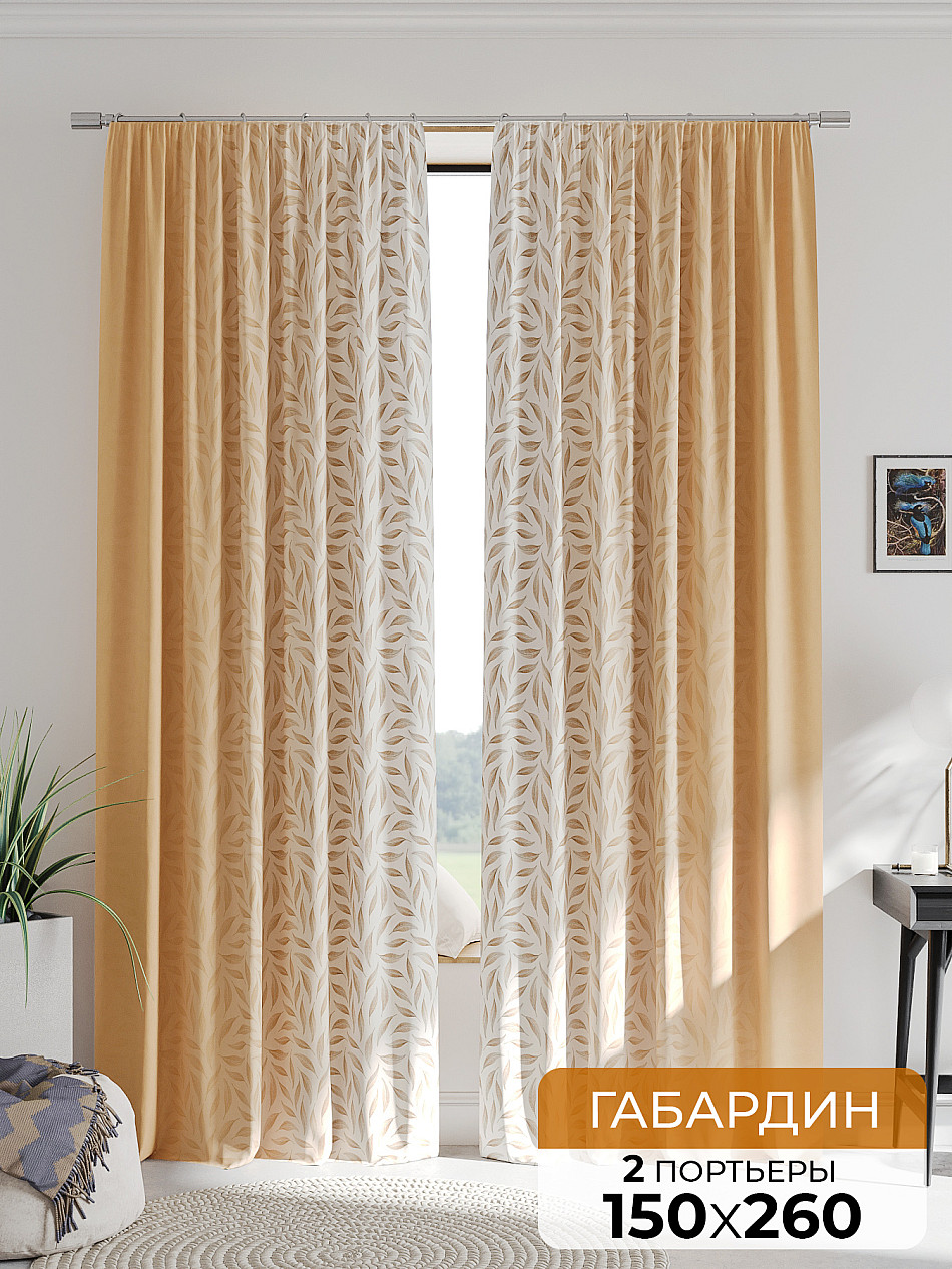 Портьера 150х260 см. — 2 шт. ( Уменьшить высоту ) Крепление: шторная лента (крючки), кулиска Подробнее