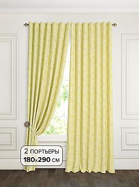 Портьеры 2 шт: Плотная, фактурная основа фисташкового цвета оформлена флористическим рисунком. Размеры одного полотна: