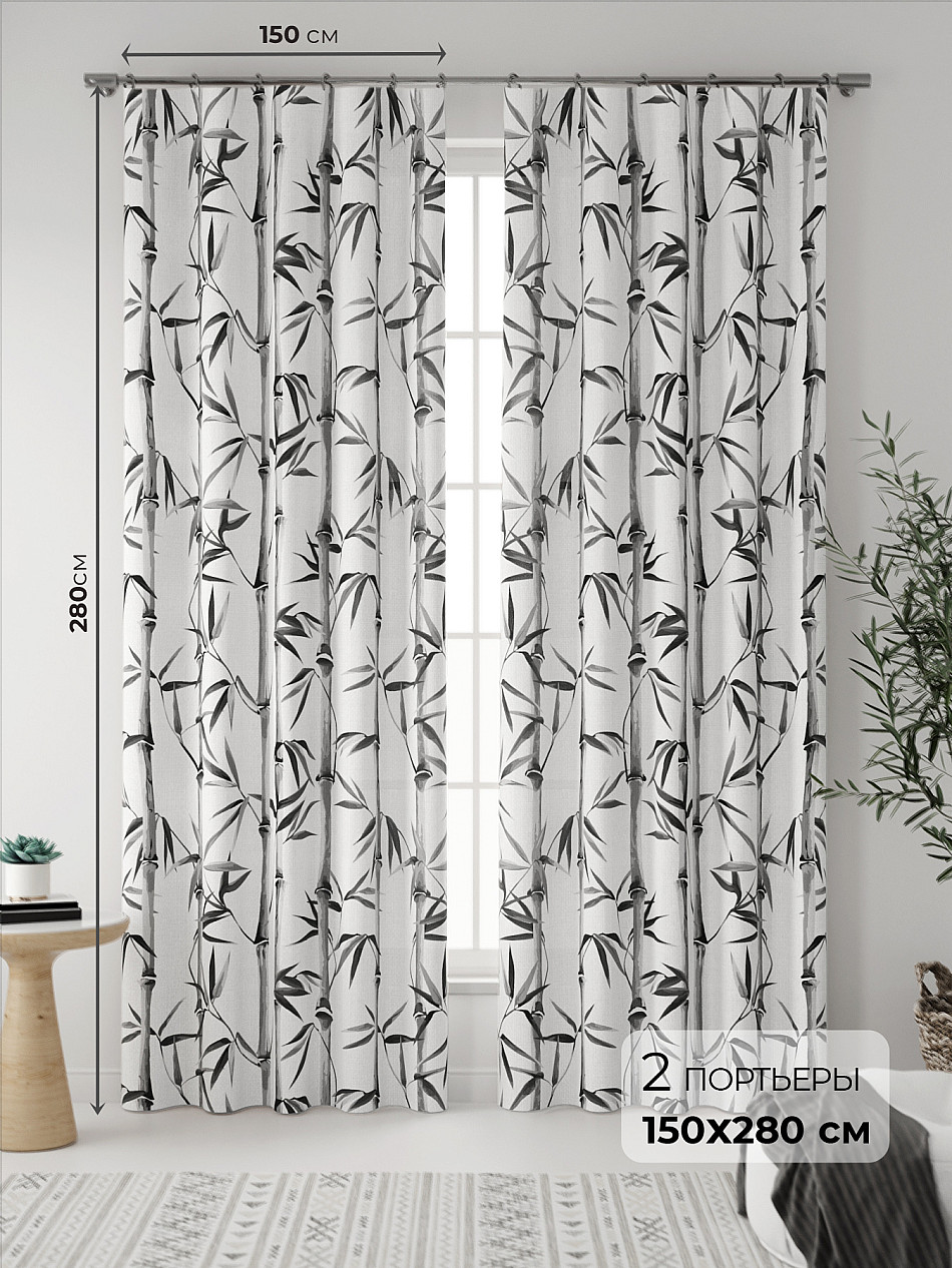 Портьера 150х280 см. — 2 шт. ( Уменьшить высоту ) Крепление: шторная лента (крючки), кулиска Подробнее