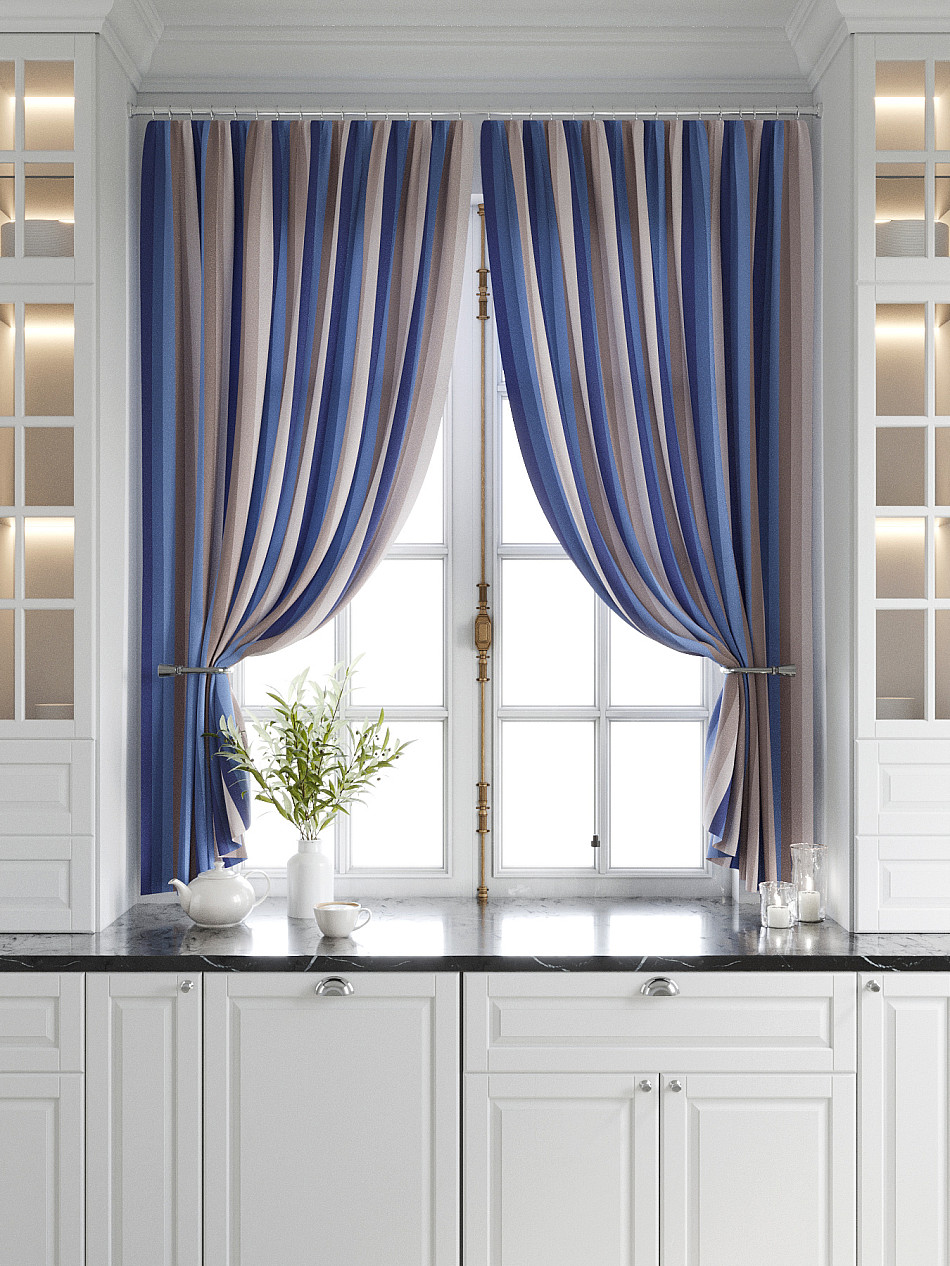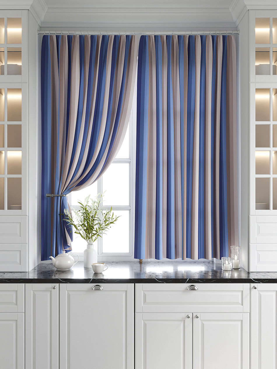Комплект штор из легкой портьерной ткани (габардин) оформлен печатным рисунком. Печатный рисунок дает широкие возможности обновить интерьер фактически нет требуя ремонта за счет огромного выбора. Ткани с печатным рисунком безопасны и не содержат токсичных веществ. Не смотря на то что, материал легкий, он имеет высокую плотность, мало загрязнятся и не требует особого ухода даже после стирки, что важно для кухонных занавесок. Шторы не выцветают, не растягиваются, превосходно драпируются, образуя струящиеся складки. Прекрасное решение для создания красоты и уюта с помощью уникальных дизайнов.