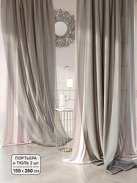 Вуаль 150х260 см — 2 шт., портьера 150х260 см — 2 шт. Крепление: шторная лента (крючки), кулиска Подробнее