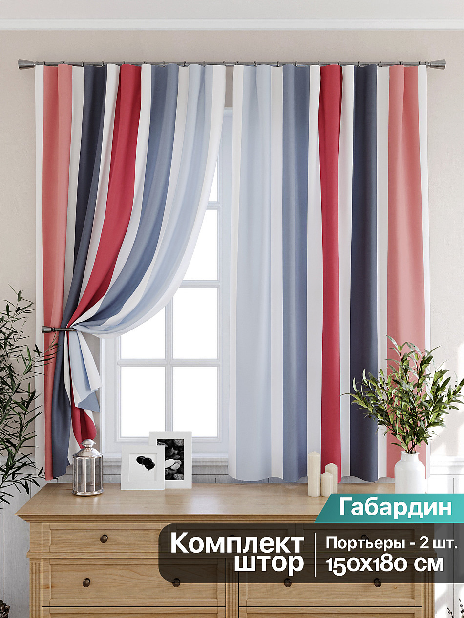 Портьеры 2 шт: Комплект штор из легкой портьерной ткани (габардин) оформлен печатным рисунком. Печатный рисунок дает широкие возможности обновить интерьер фактически нет требуя ремонта за счет огромного выбора. Ткани с печатным рисунком безопасны и не содержат токсичных веществ. Не смотря на то что, материал легкий, он имеет высокую плотность, мало загрязнятся и не требует особого ухода даже после стирки, что важно для кухонных занавесок. Шторы не выцветают, не растягиваются, превосходно драпируются, образуя струящиеся складки. Прекрасное решение для создания красоты и уюта с помощью уникальных дизайнов.