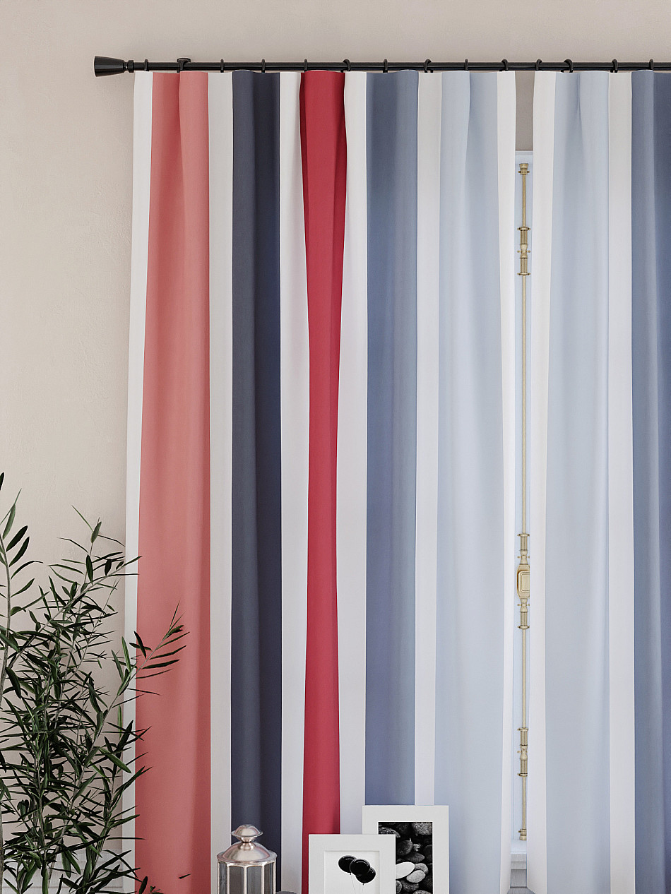По верхнему краю портьер пришита шторная тесьма 6 см, с ее помощью затянув узелки от кордовых нитей с обеих сторон и стянув их до нужного размера можно сформировать округлые складки, далее вставить крючки в кармашки и повесить на карниз. Обязательно проверьте кордовые нити – они должны быть надежно завязаны, в противном случае во время стягивания они могут вылететь. Шторная тесьма имеет два ряда кармашков, с их помощью можно регулировать не только длину, но и ширину. Такое крепление подходит для всех типов карнизов.