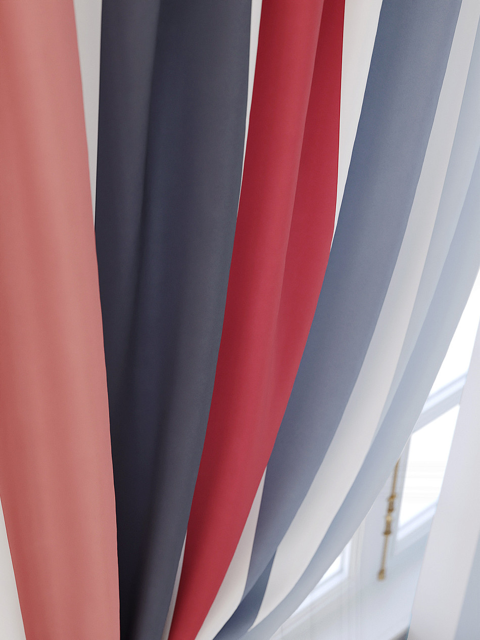 Габардин представляет собой целую группу тканей, которые отличаются содержанием и сочетанием различных волокон – хлопка, шелка, шерсти или синтетики. В зависимости от состава материала, шторы из габардина могут быть разными по плотности и внешнему виду, но всегда отличаются характерным декоративным рубчиком на поверхности. Габардин – идеальная ткань для пошива штор, поскольку она отлично дышит, не мнется, легкая и мягкая на ощупь, но при этом прочная и хорошо защищает от солнечных лучей.