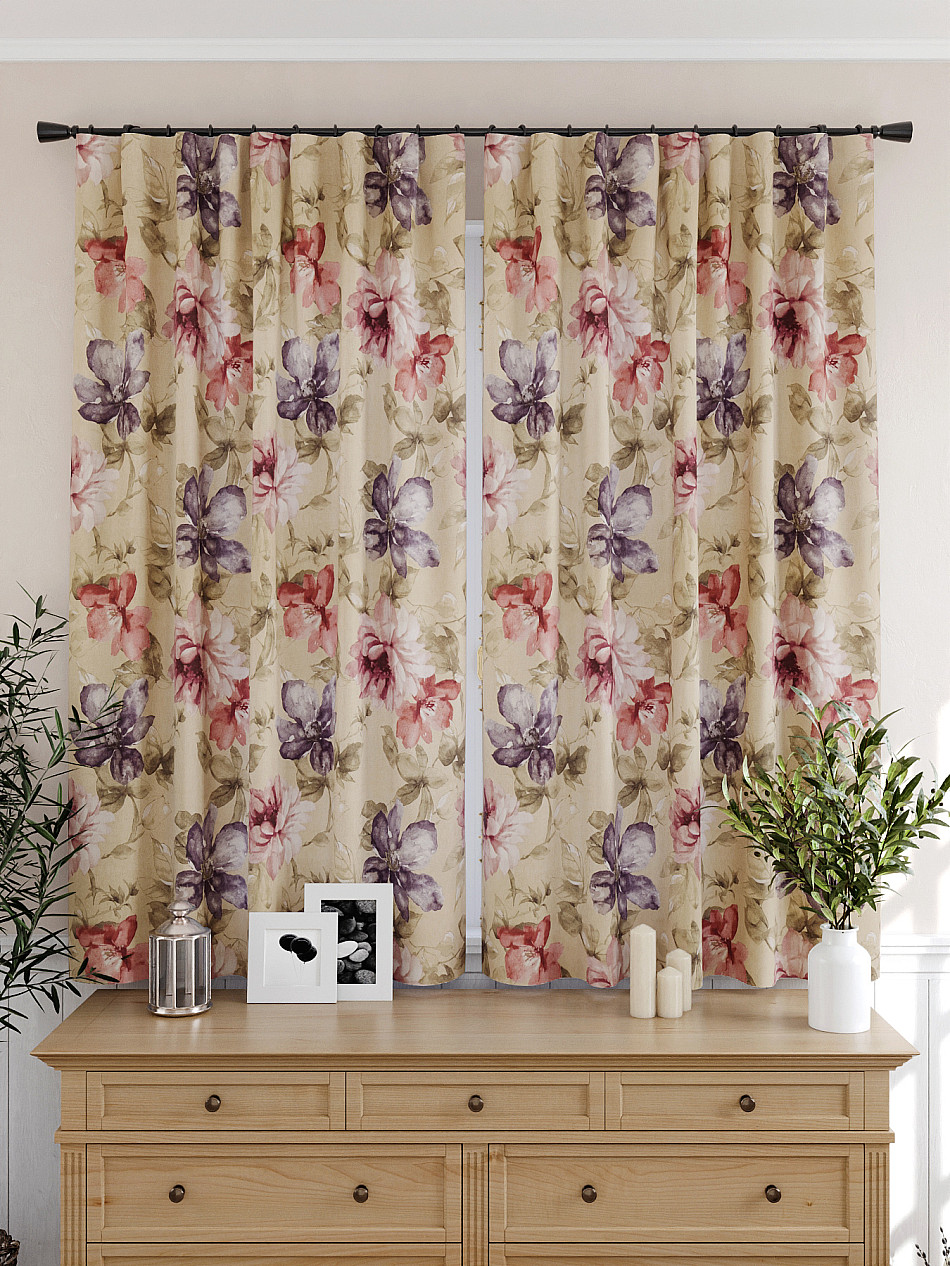 Портьера 2 шт. — 150х180 см. ( Изменить высоту) Крепление: шторная лента (крючки), кулиска Подробнее