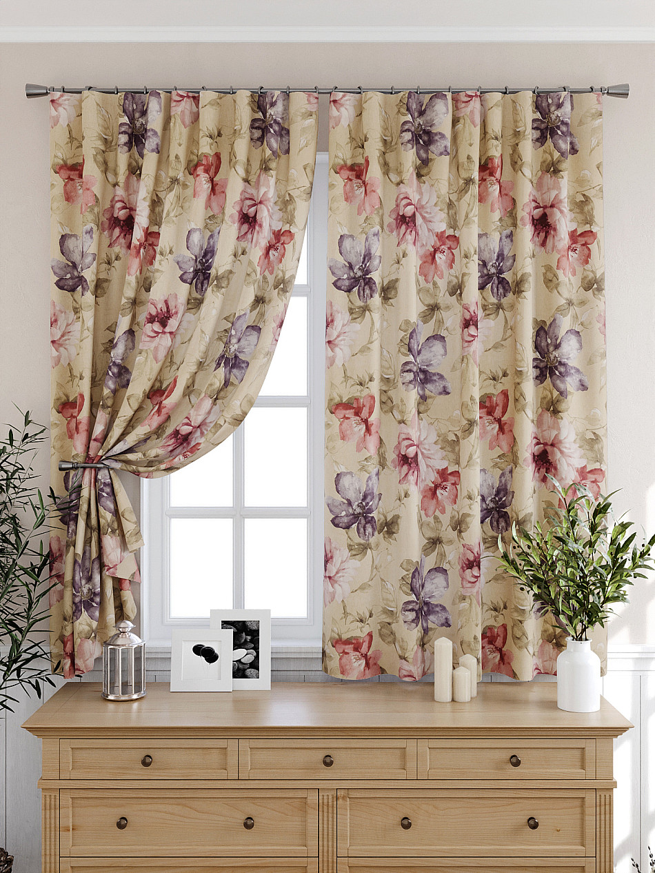 Портьеры 2 шт: Комплект штор из легкой портьерной ткани (габардин) оформлен печатным рисунком. Печатный рисунок дает широкие возможности обновить интерьер фактически нет требуя ремонта за счет огромного выбора. Ткани с печатным рисунком безопасны и не содержат токсичных веществ. Не смотря на то что, материал легкий, он имеет высокую плотность, мало загрязнятся и не требует особого ухода даже после стирки, что важно для кухонных занавесок. Шторы не выцветают, не растягиваются, превосходно драпируются, образуя струящиеся складки. Прекрасное решение для создания красоты и уюта с помощью уникальных дизайнов.