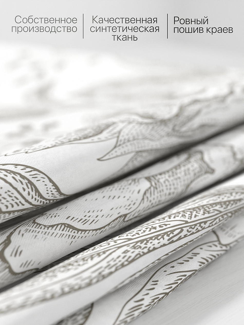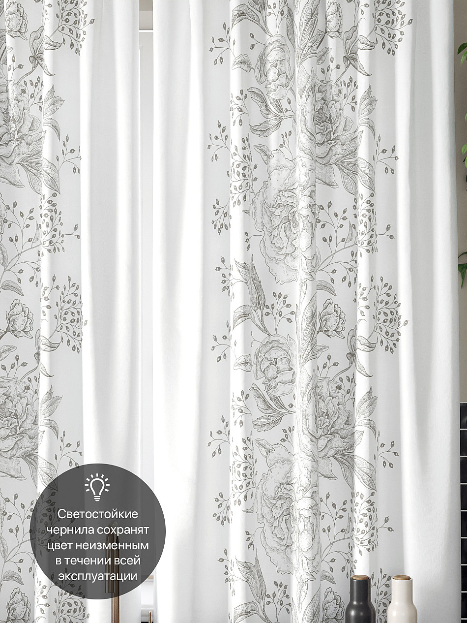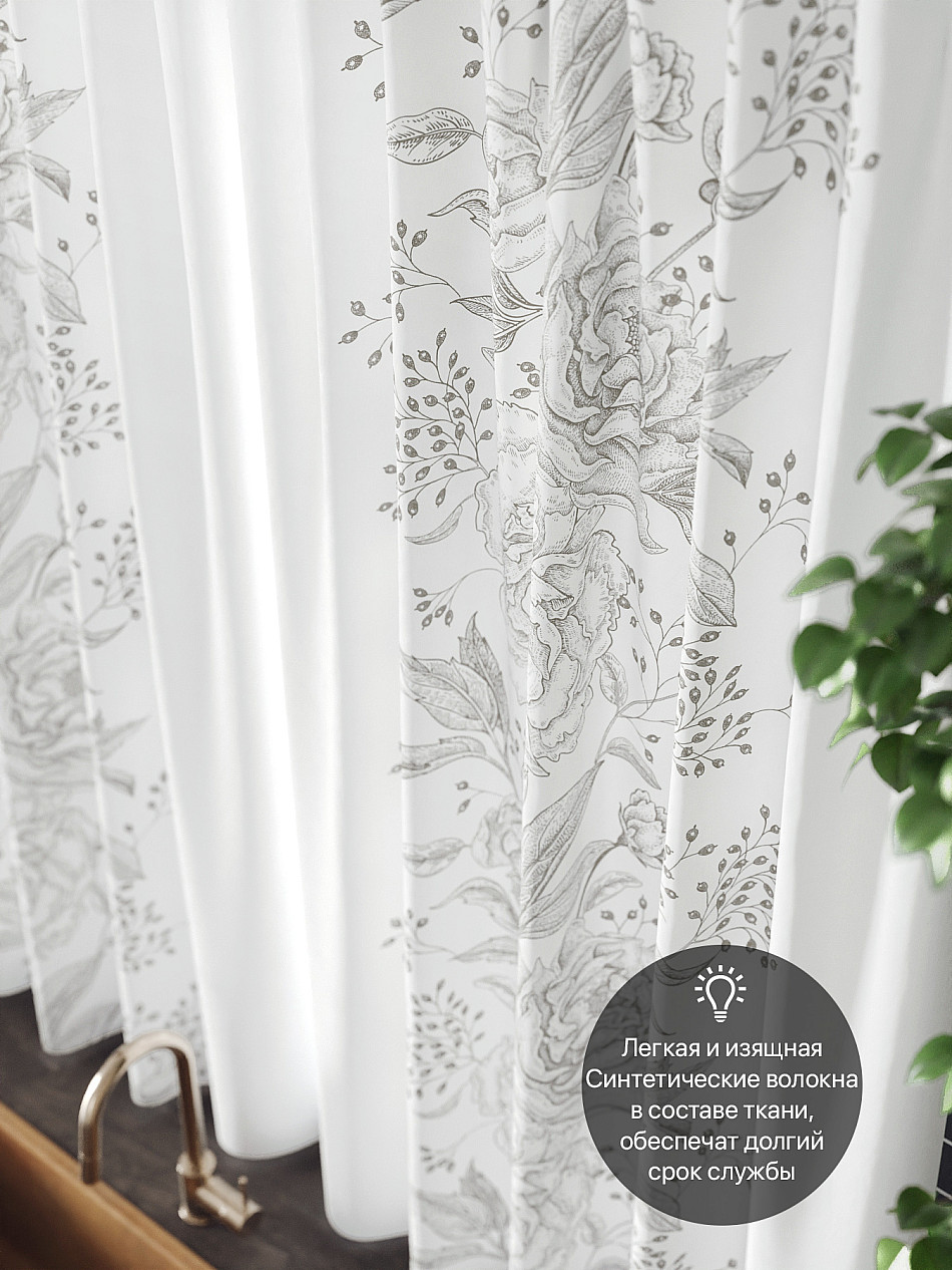 Комплект штор из легкой портьерной ткани (габардин) оформлен печатным рисунком. Печатный рисунок дает широкие возможности обновить интерьер фактически нет требуя ремонта за счет огромного выбора. Ткани с печатным рисунком безопасны и не содержат токсичных веществ. Не смотря на то что, материал легкий, он имеет высокую плотность, мало загрязнятся и не требует особого ухода даже после стирки, что важно для кухонных занавесок. Шторы не выцветают, не растягиваются, превосходно драпируются, образуя струящиеся складки. Прекрасное решение для создания красоты и уюта с помощью уникальных дизайнов.
