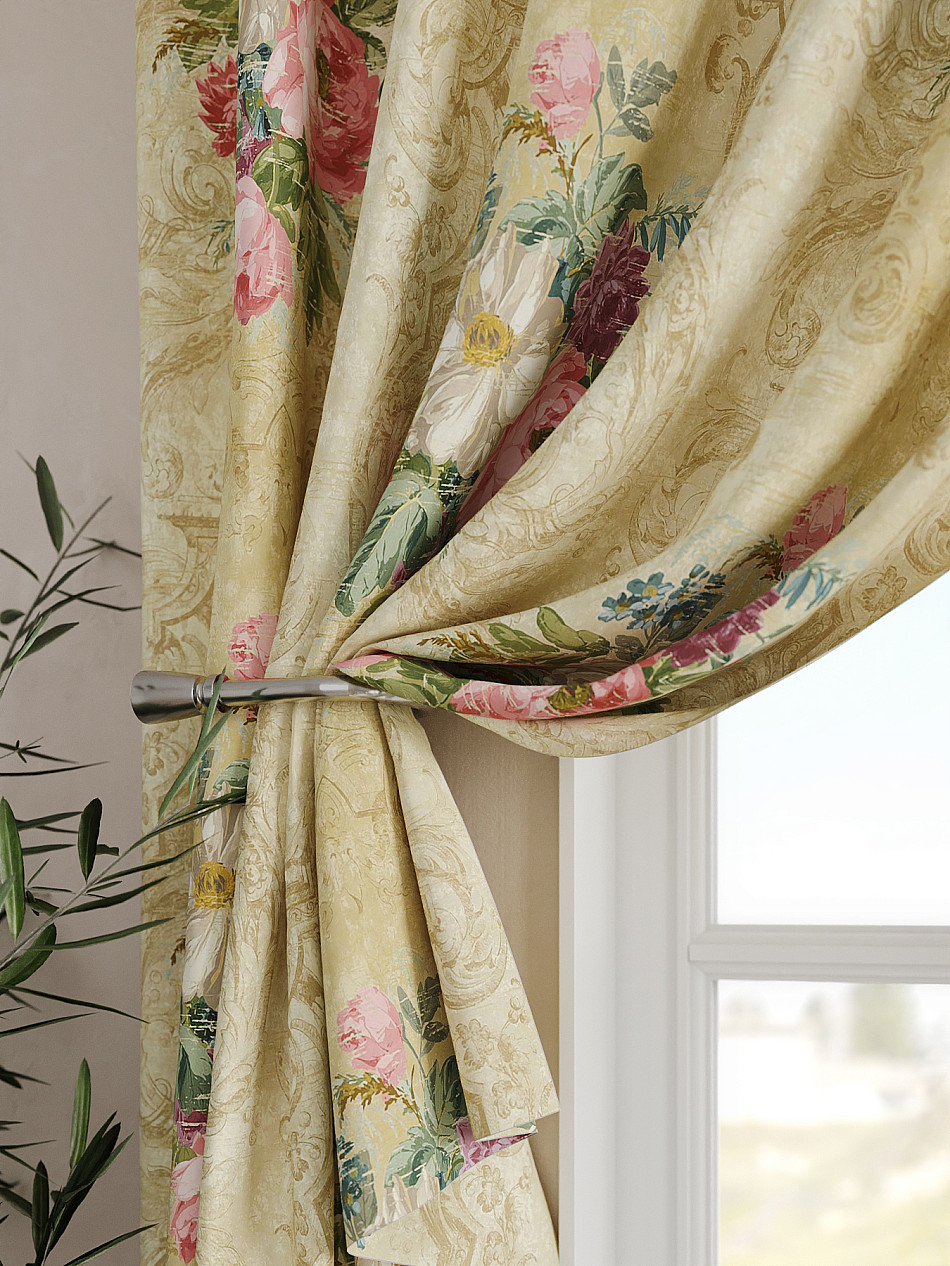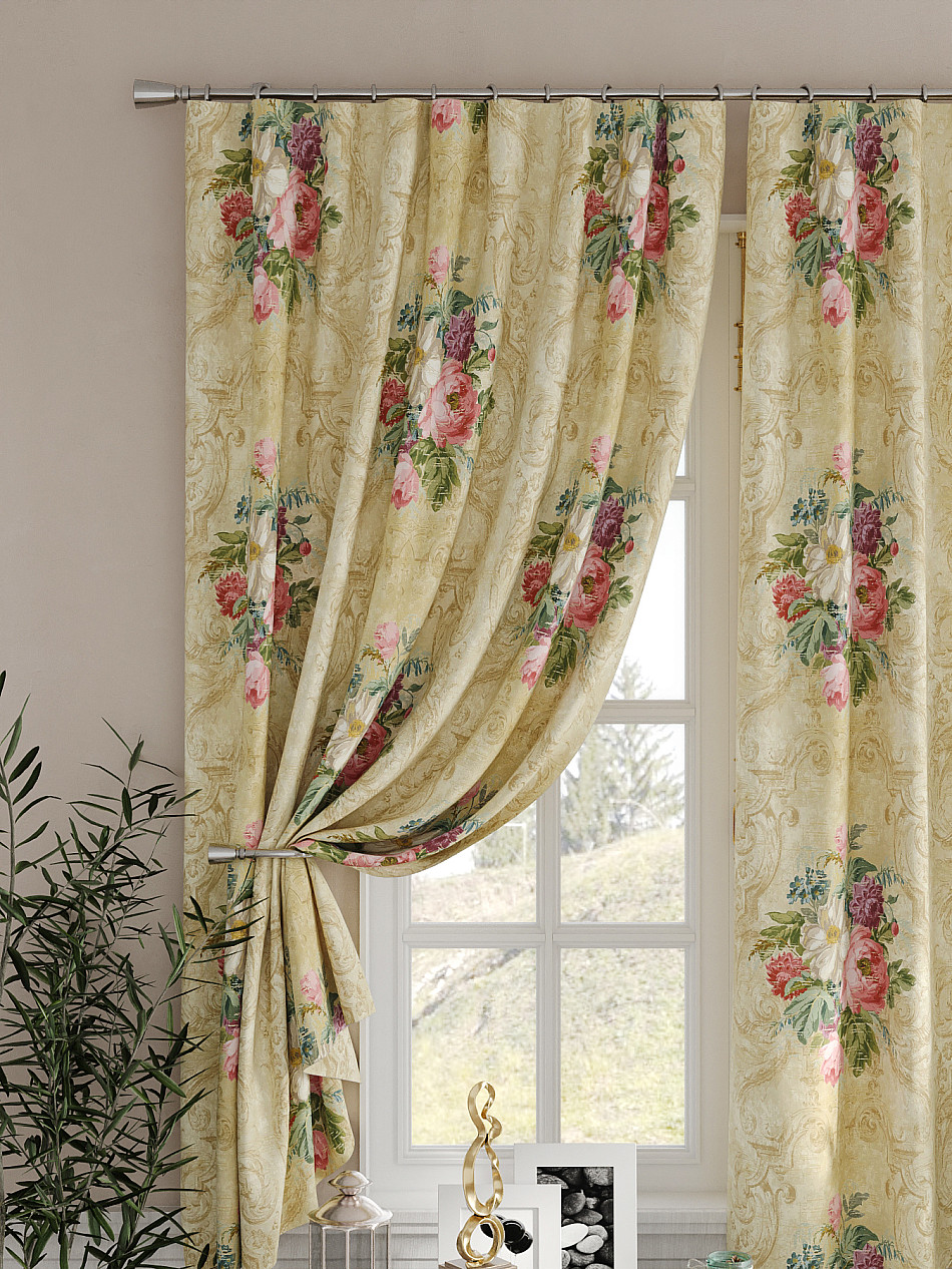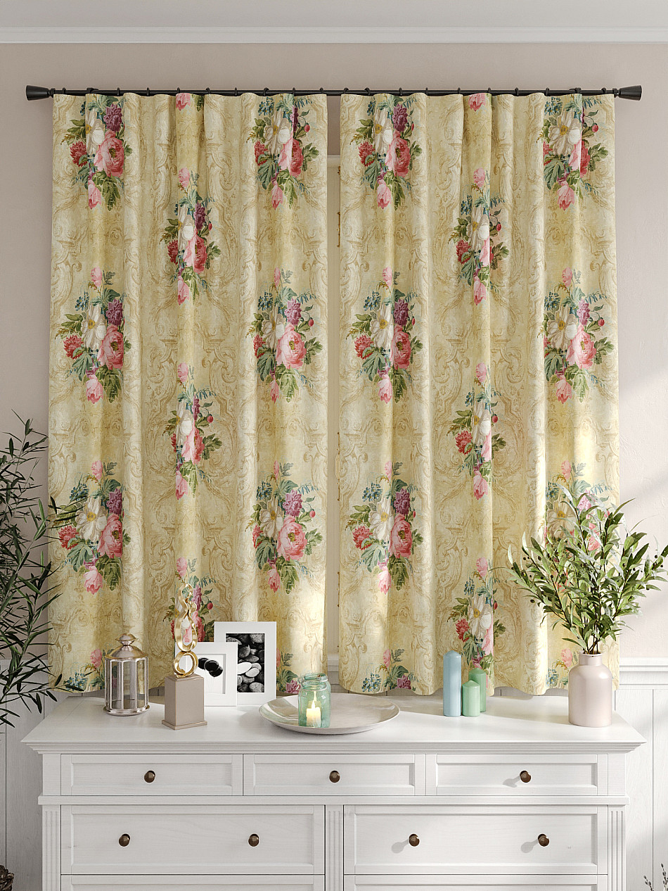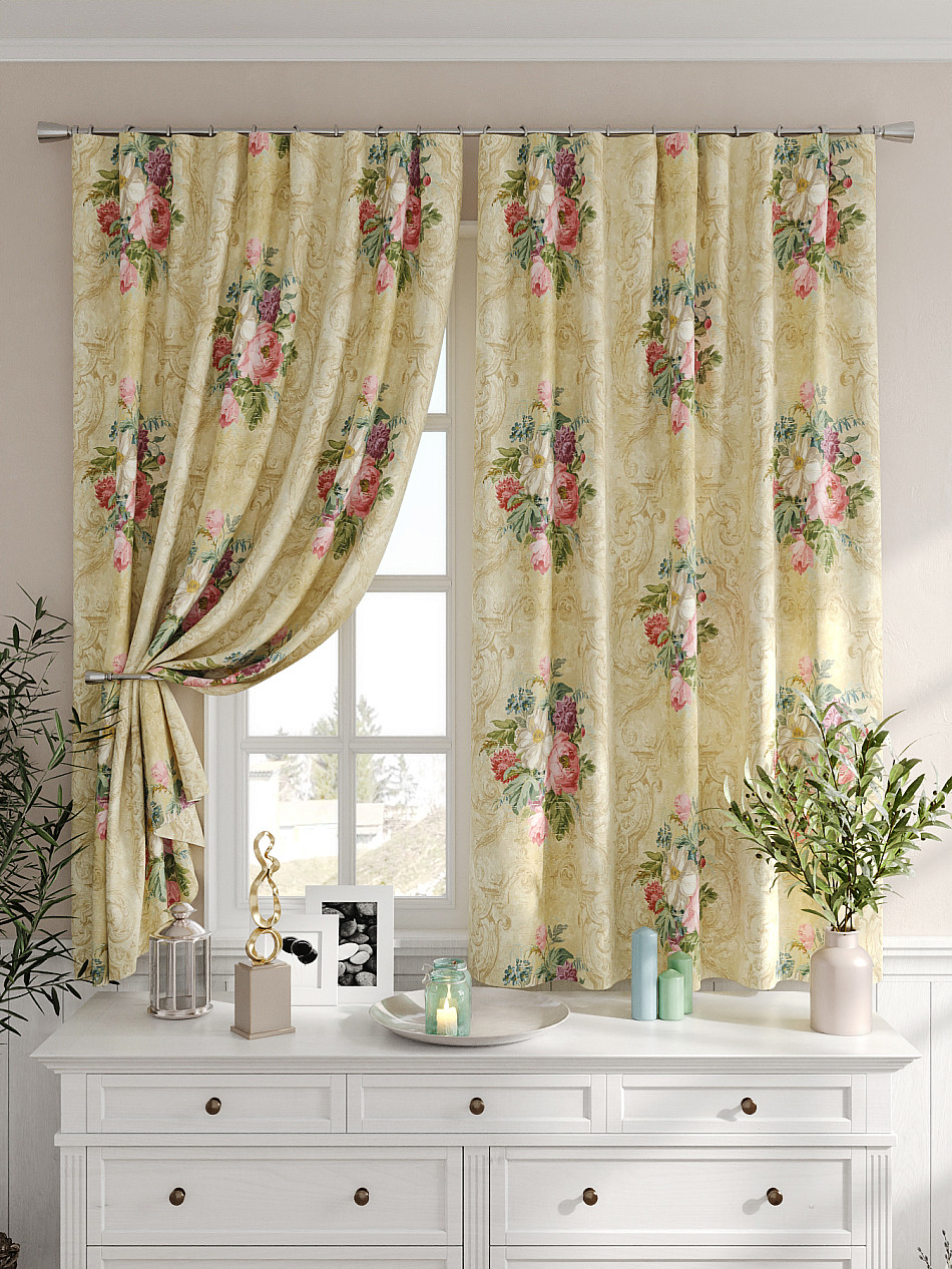 Портьеры 2 шт. Комплект штор из легкой портьерной ткани (габардин) оформлен печатным рисунком. Печатный рисунок дает широкие возможности обновить интерьер фактически не требуя ремонта за счет огромного выбора. Ткани с печатным рисунком безопасны и не содержат токсичных веществ. Не смотря на то, что материал легкий, он имеет высокую плотность, мало загрязнятся и не требует особого ухода даже после стирки, что важно для кухонных занавесок. Шторы не выцветают, не растягиваются, превосходно драпируются, образуя струящиеся складки. Прекрасное решение для создания красоты и уюта с помощью уникальных дизайнов.