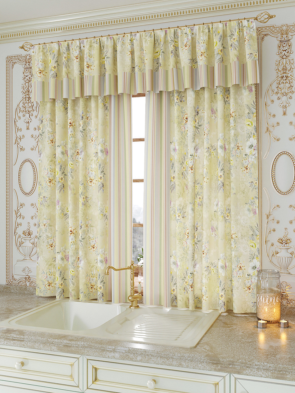 Ламбрекен: легкая основа (Габардин). Ширина — 300 см, высота — 40 см, крепление — шторная лента (крючки).