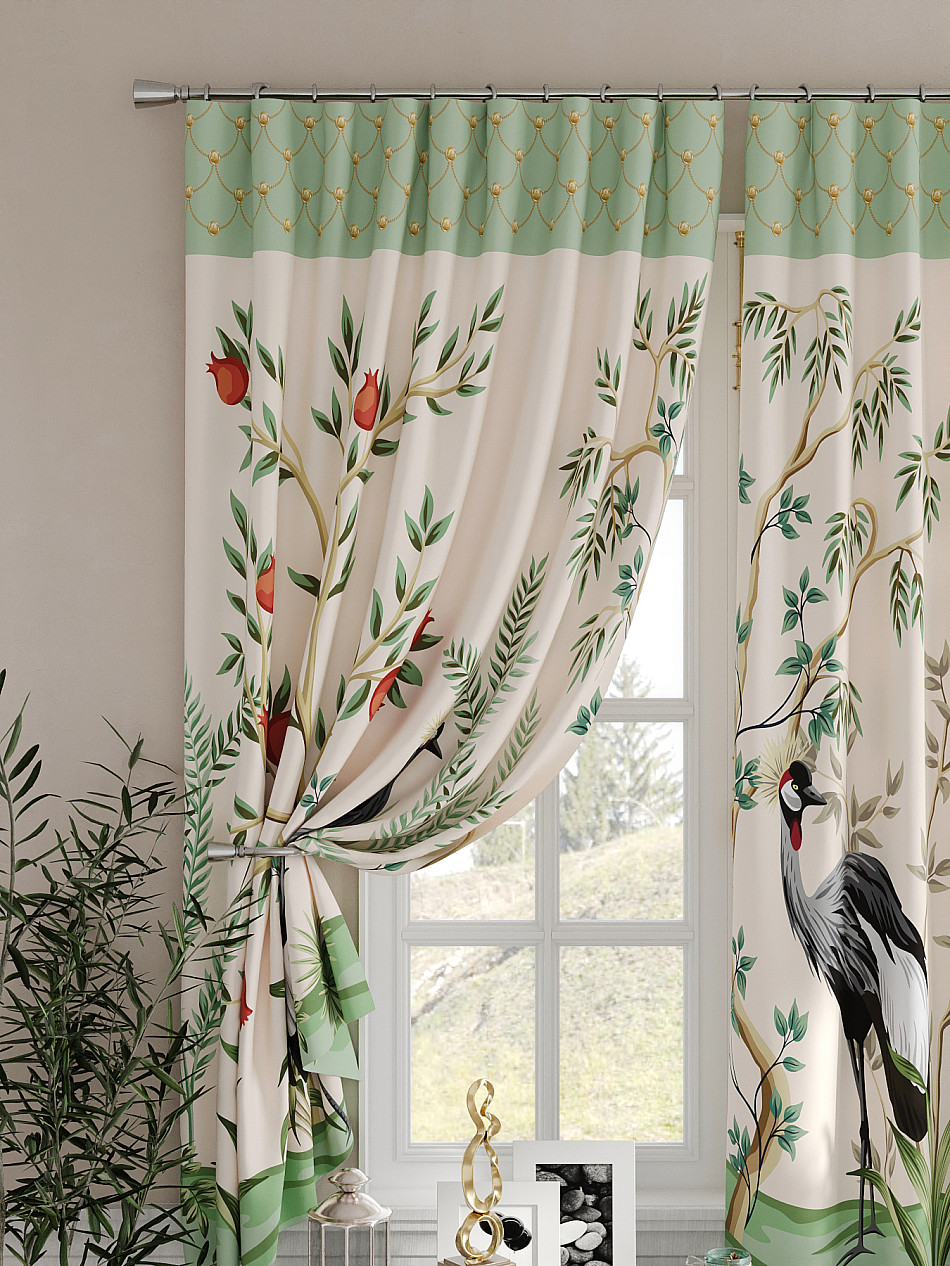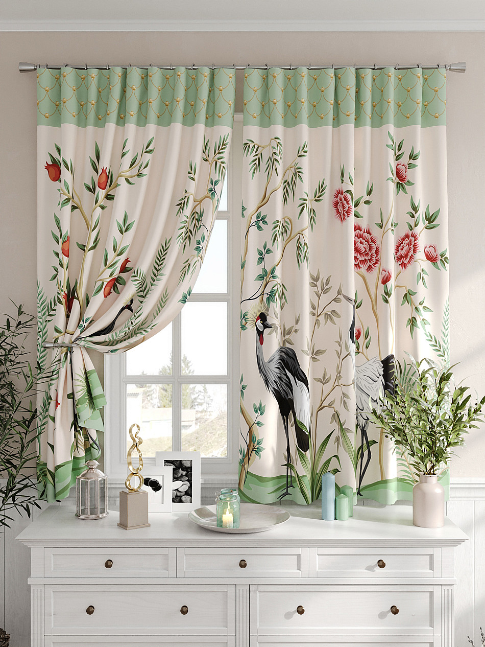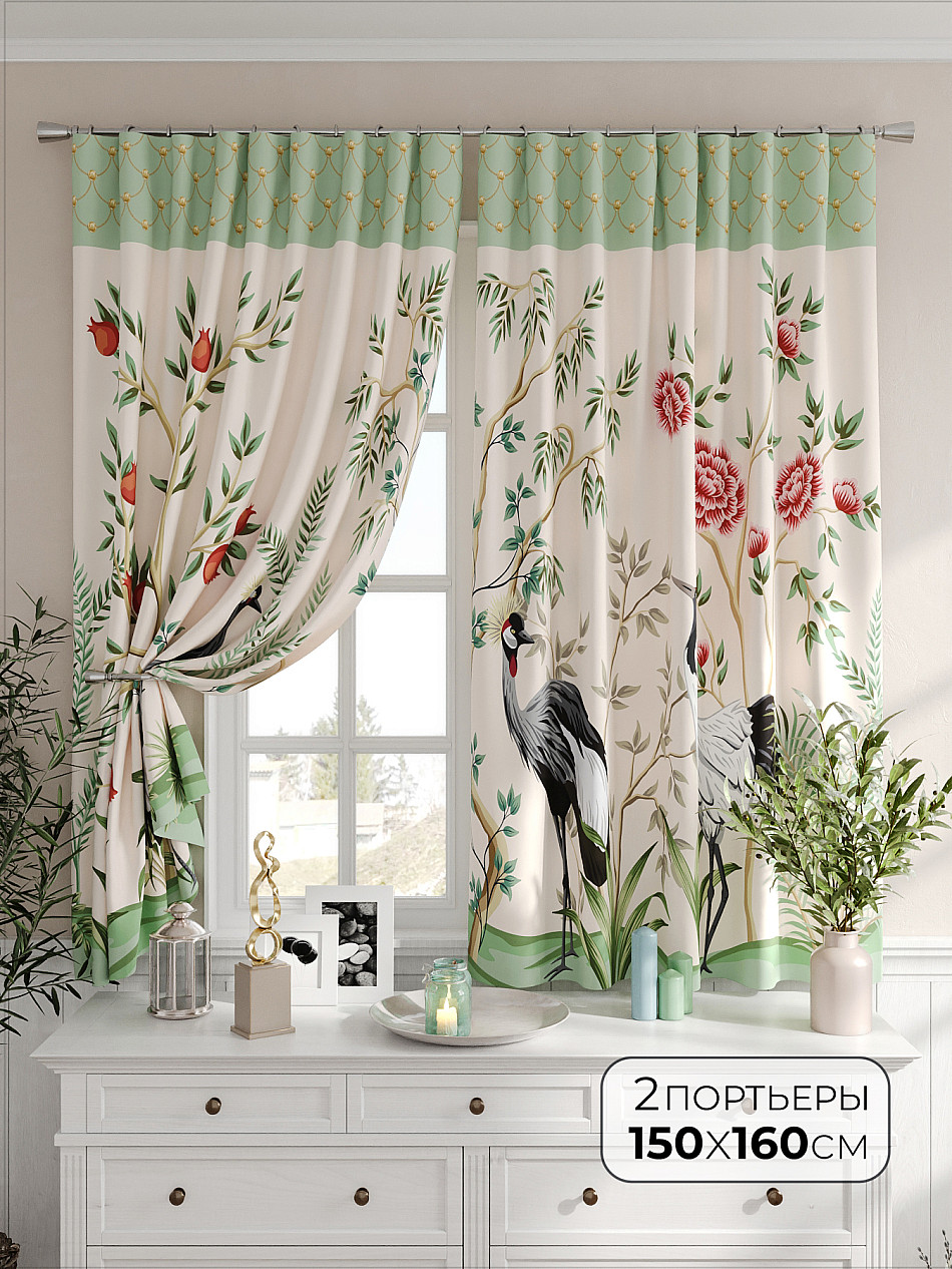 Портьеры 2 шт. Комплект штор из легкой портьерной ткани (габардин) оформлен печатным рисунком. Печатный рисунок дает широкие возможности обновить интерьер фактически не требуя ремонта за счет огромного выбора. Ткани с печатным рисунком безопасны и не содержат токсичных веществ. Не смотря на то, что материал легкий, он имеет высокую плотность, мало загрязнятся и не требует особого ухода даже после стирки, что важно для кухонных занавесок. Шторы не выцветают, не растягиваются, превосходно драпируются, образуя струящиеся складки. Прекрасное решение для создания красоты и уюта с помощью уникальных дизайнов.
