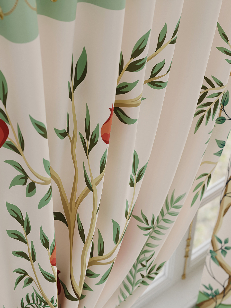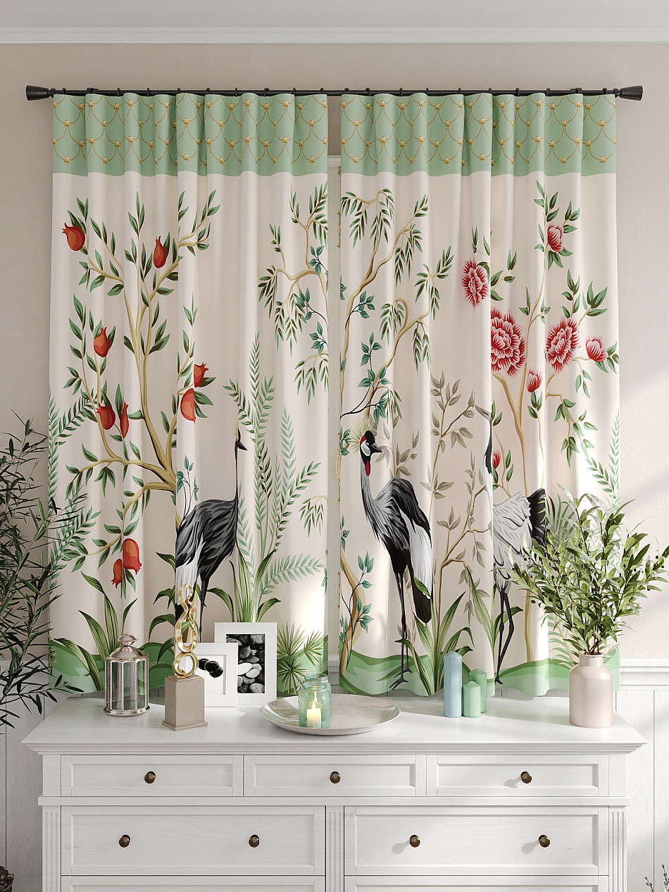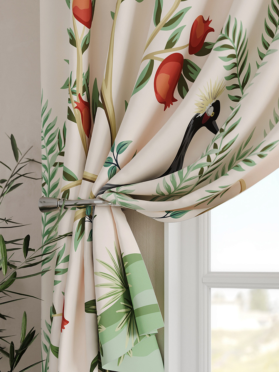 Портьеры 2 шт. Комплект штор из легкой портьерной ткани (габардин) оформлен печатным рисунком. Печатный рисунок дает широкие возможности обновить интерьер фактически не требуя ремонта за счет огромного выбора. Ткани с печатным рисунком безопасны и не содержат токсичных веществ. Не смотря на то, что материал легкий, он имеет высокую плотность, мало загрязнятся и не требует особого ухода даже после стирки, что важно для кухонных занавесок. Шторы не выцветают, не растягиваются, превосходно драпируются, образуя струящиеся складки. Прекрасное решение для создания красоты и уюта с помощью уникальных дизайнов.