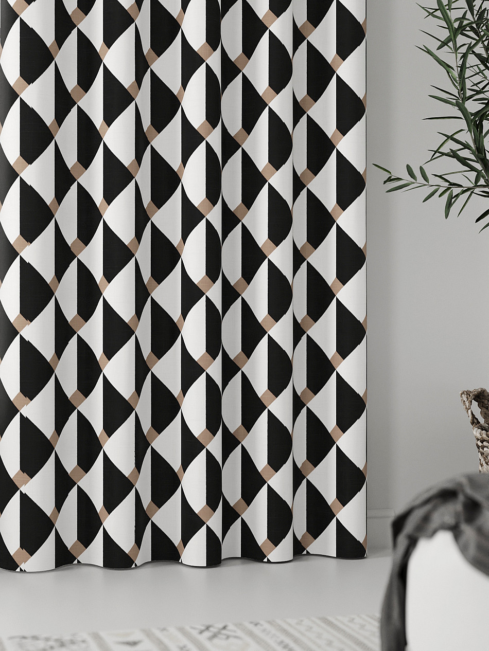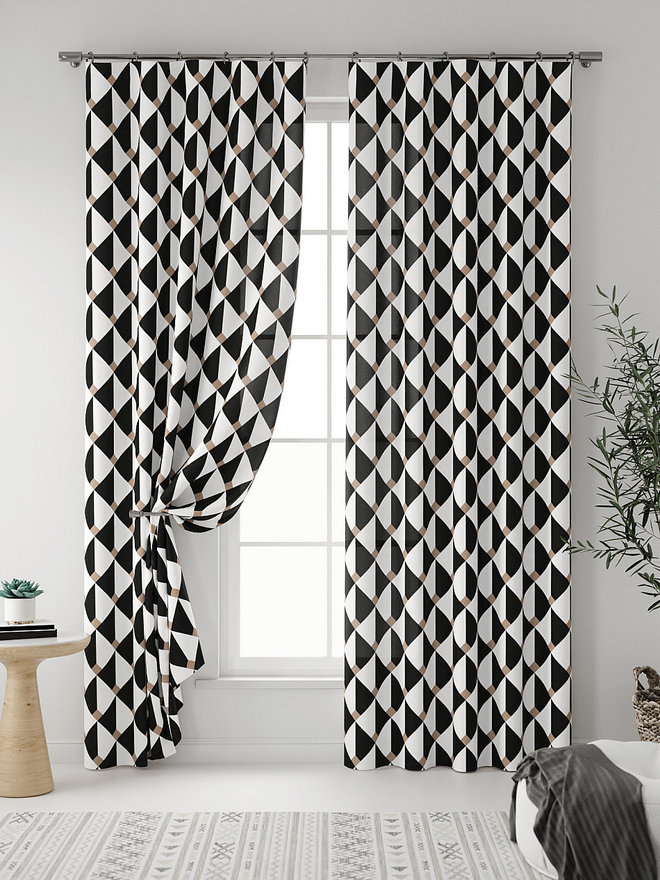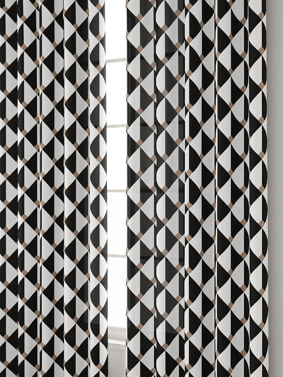 Абстракция Геометрия Современный Узоры Клетка Комбинированные Фото принтАксессуары для оформления штор: