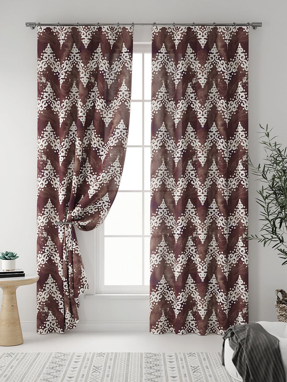 Вензеля Геометрия Зигзаг Один цвет Полоска Современный Однотонные с элементами Узоры Фото принтАксессуары для оформления штор: