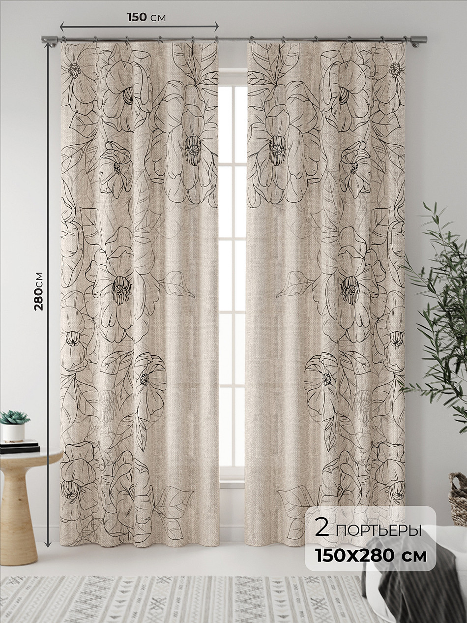 Портьера 150х280 см. — 2 шт. ( Уменьшить высоту ) Крепление: шторная лента (крючки), кулиска Подробнее