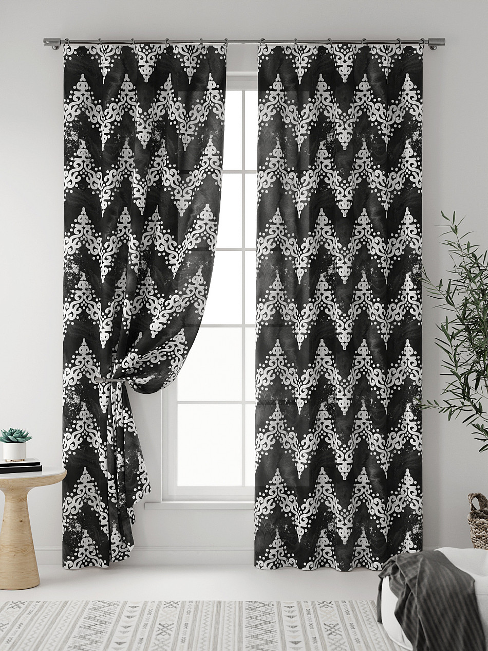 Абстракция Геометрия Зигзаг Современный Узоры Вензеля Комбинированные Фото принтАксессуары для оформления штор: