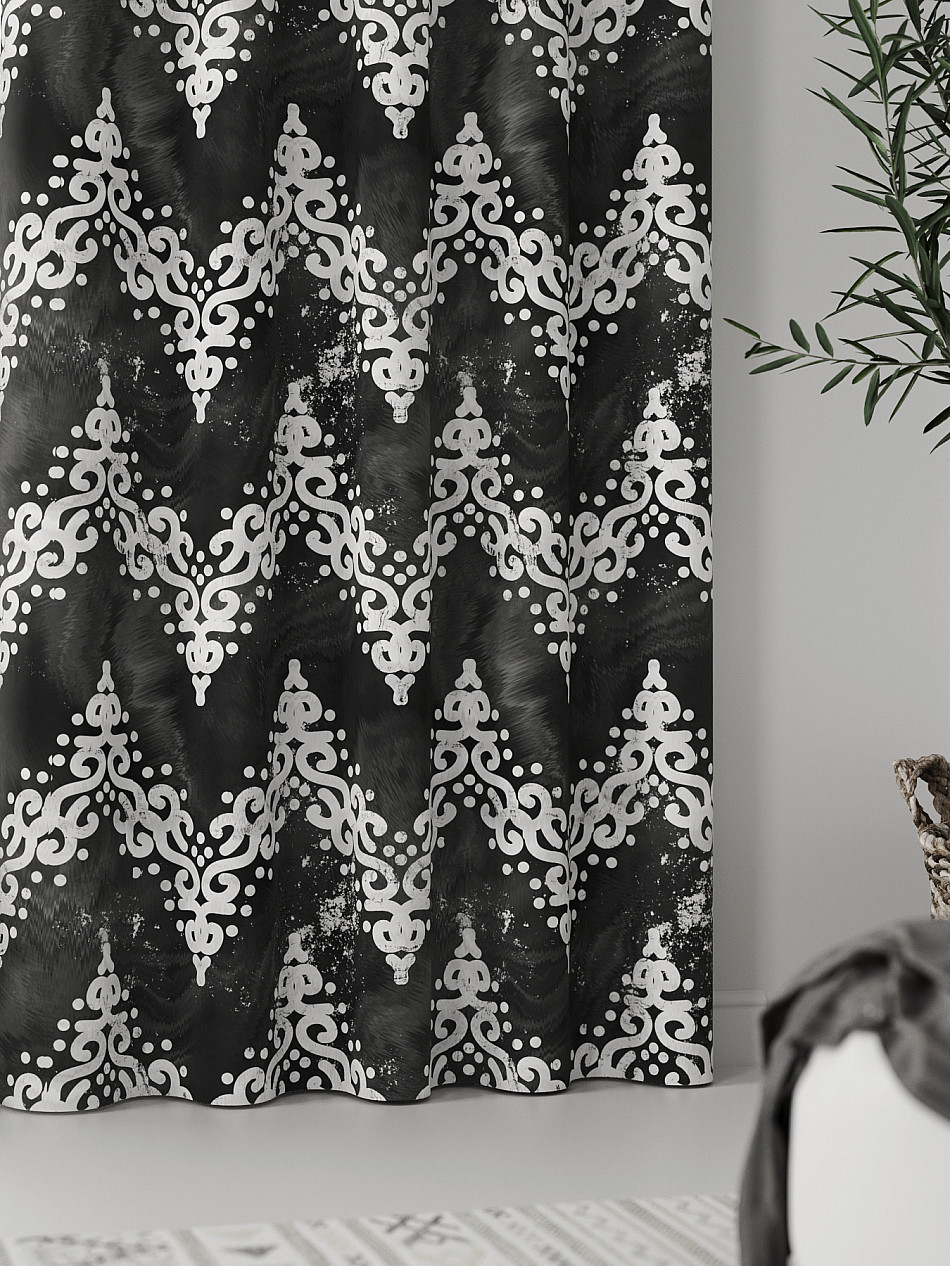 - Шторы с вензелями серые