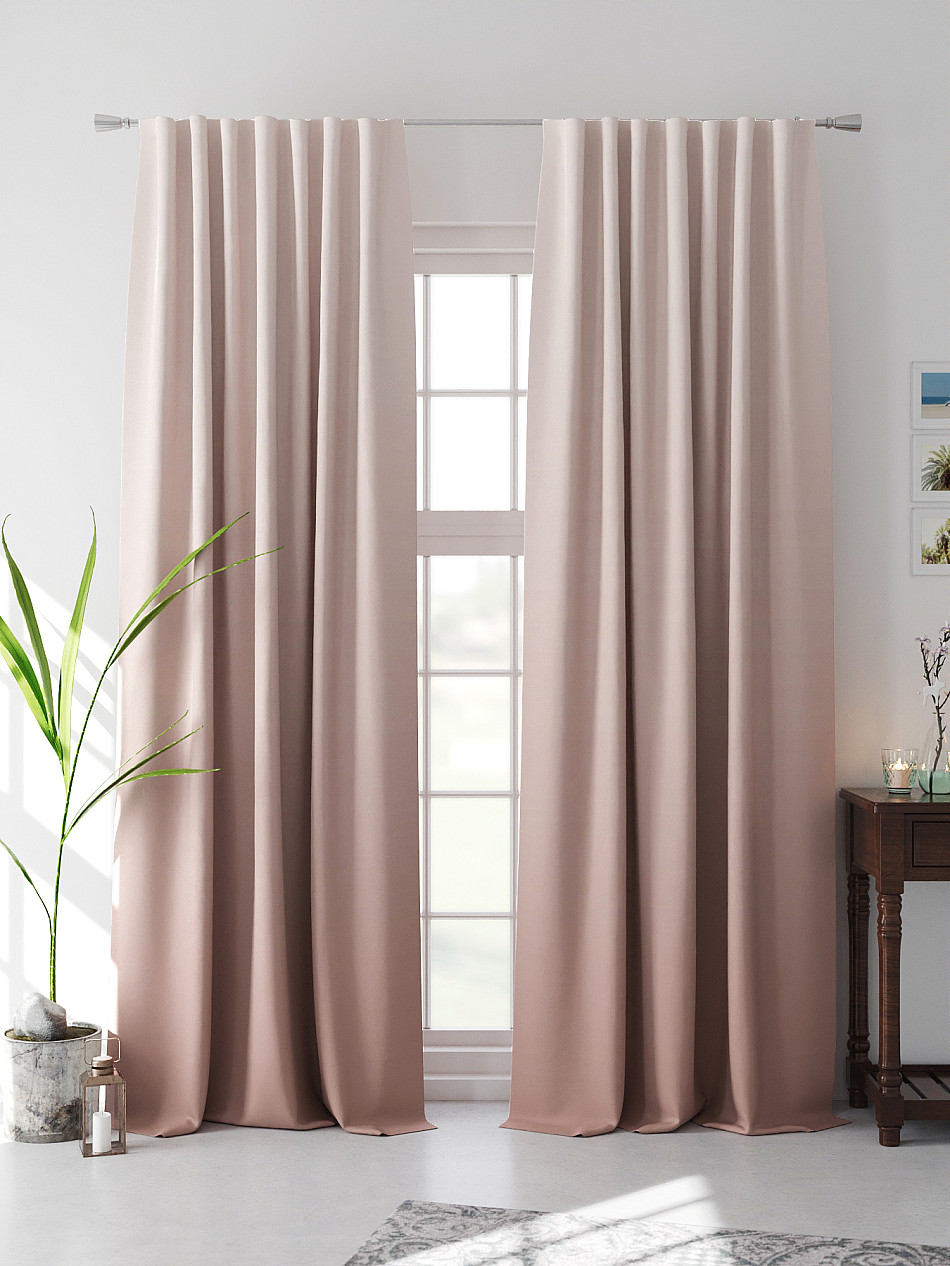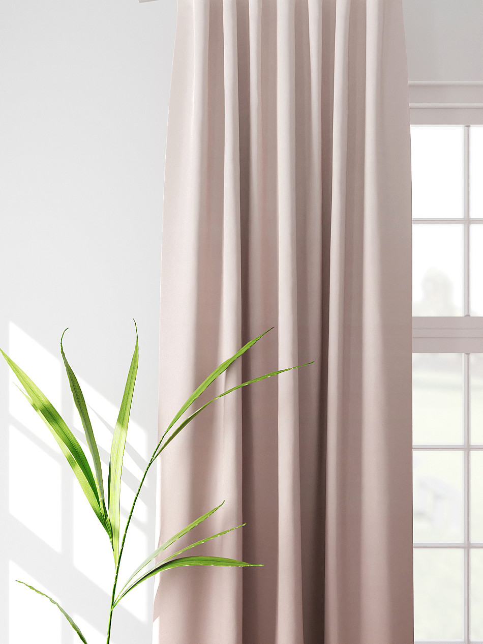 По верхнему краю портьер пришита шторная тесьма 6 см, с ее помощью затянув узелки от кордовых нитей с обеих сторон и стянув их до нужного размера можно сформировать округлые складки, далее вставить крючки в кармашки и повесить на карниз. Обязательно проверьте кордовые нити – они должны быть надежно завязаны, в противном случае во время стягивания они могут вылететь. Шторная тесьма имеет два ряда кармашков, с их помощью можно регулировать не только длину, но и ширину. Такое крепление подходит для всех типов карнизов.
