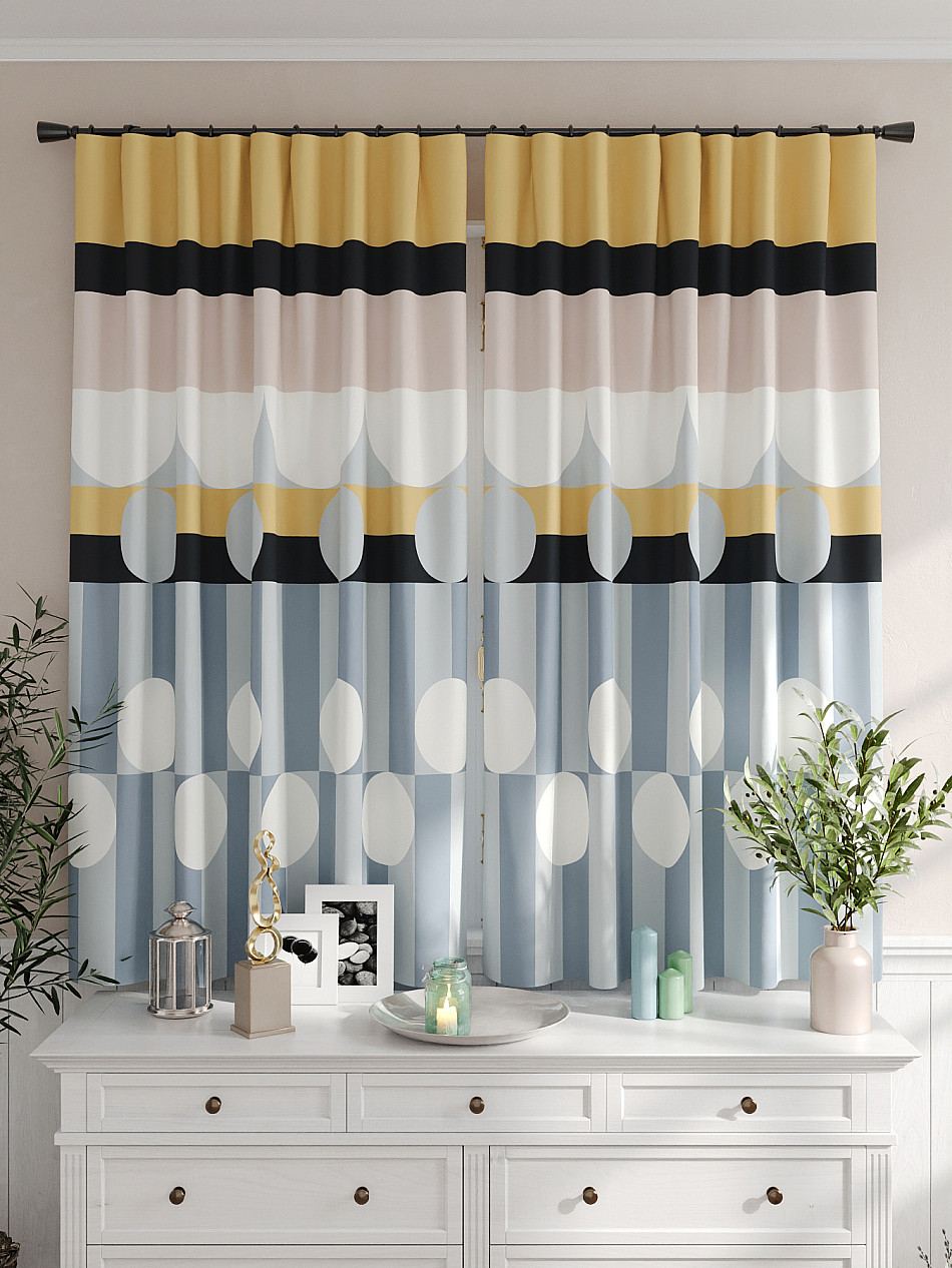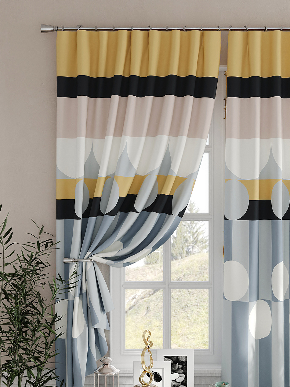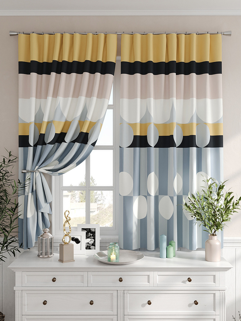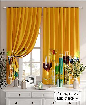 Портьеры 2 шт. Комплект штор из легкой портьерной ткани (габардин) оформлен печатным рисунком. Печатный рисунок дает широкие возможности обновить интерьер фактически не требуя ремонта за счет огромного выбора. Ткани с печатным рисунком безопасны и не содержат токсичных веществ. Не смотря на то, что материал легкий, он имеет высокую плотность, мало загрязнятся и не требует особого ухода даже после стирки, что важно для кухонных занавесок. Шторы не выцветают, не растягиваются, превосходно драпируются, образуя струящиеся складки. Прекрасное решение для создания красоты и уюта с помощью уникальных дизайнов.