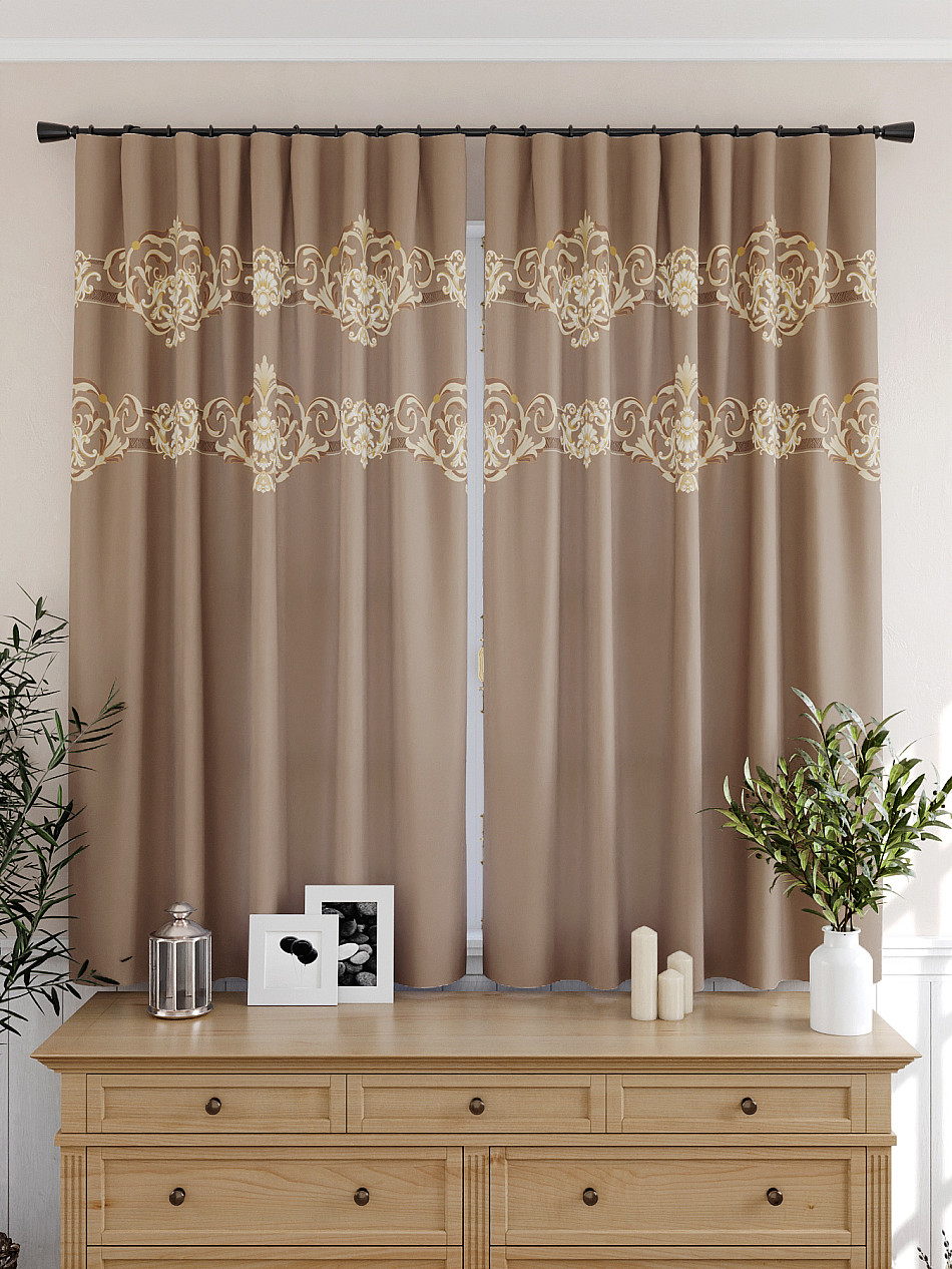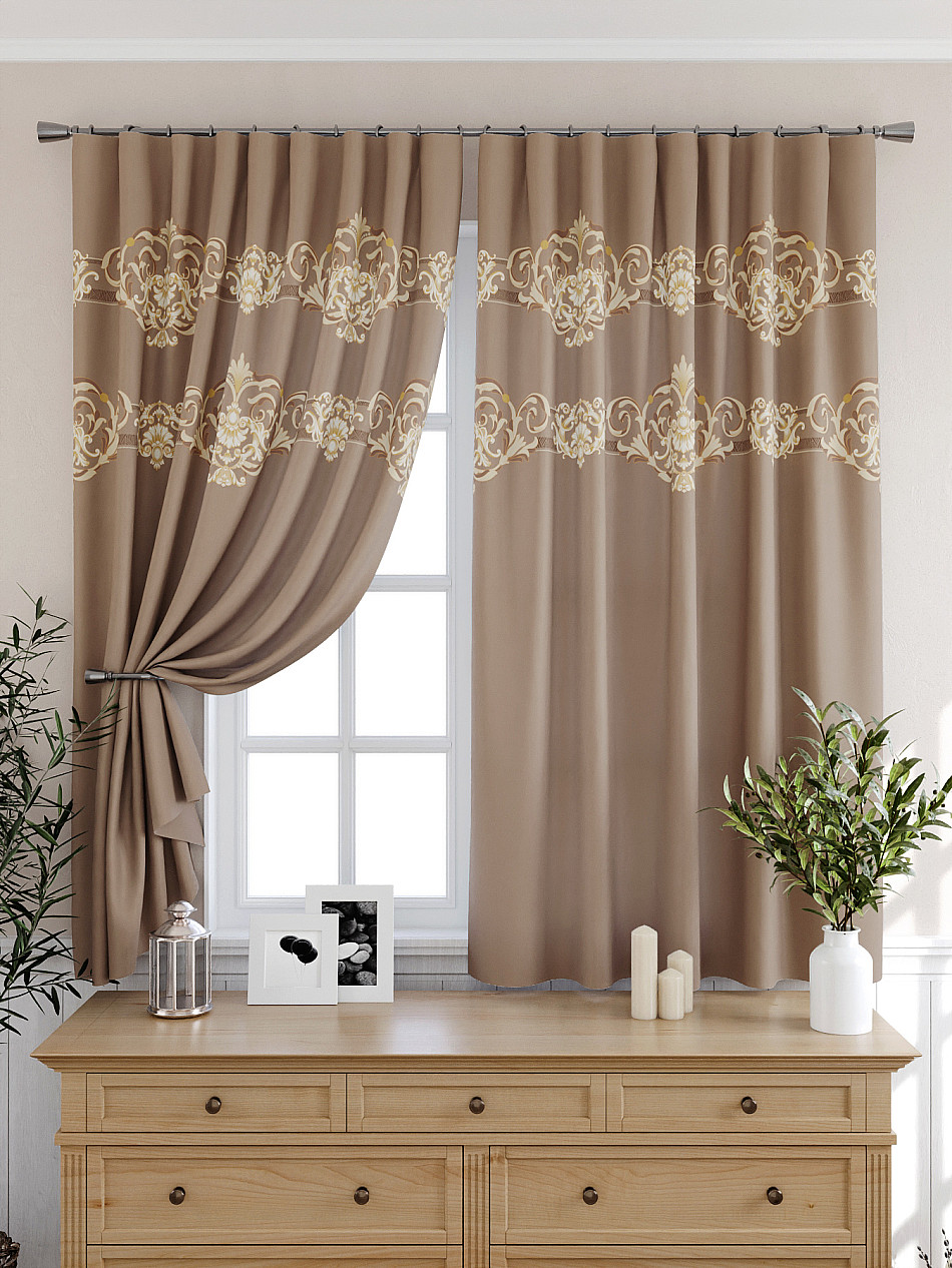 Портьера 2 шт. — 150х180 см. ( Изменить высоту) Крепление: шторная лента (крючки), кулиска Подробнее