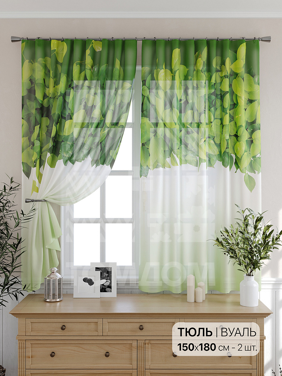 очень красивый тюль, в натуральном виде зеленый цвет более нежный, сама штора белоснежная. пошив очень аккуратный, шторная лента плотная. покупкой довольна -