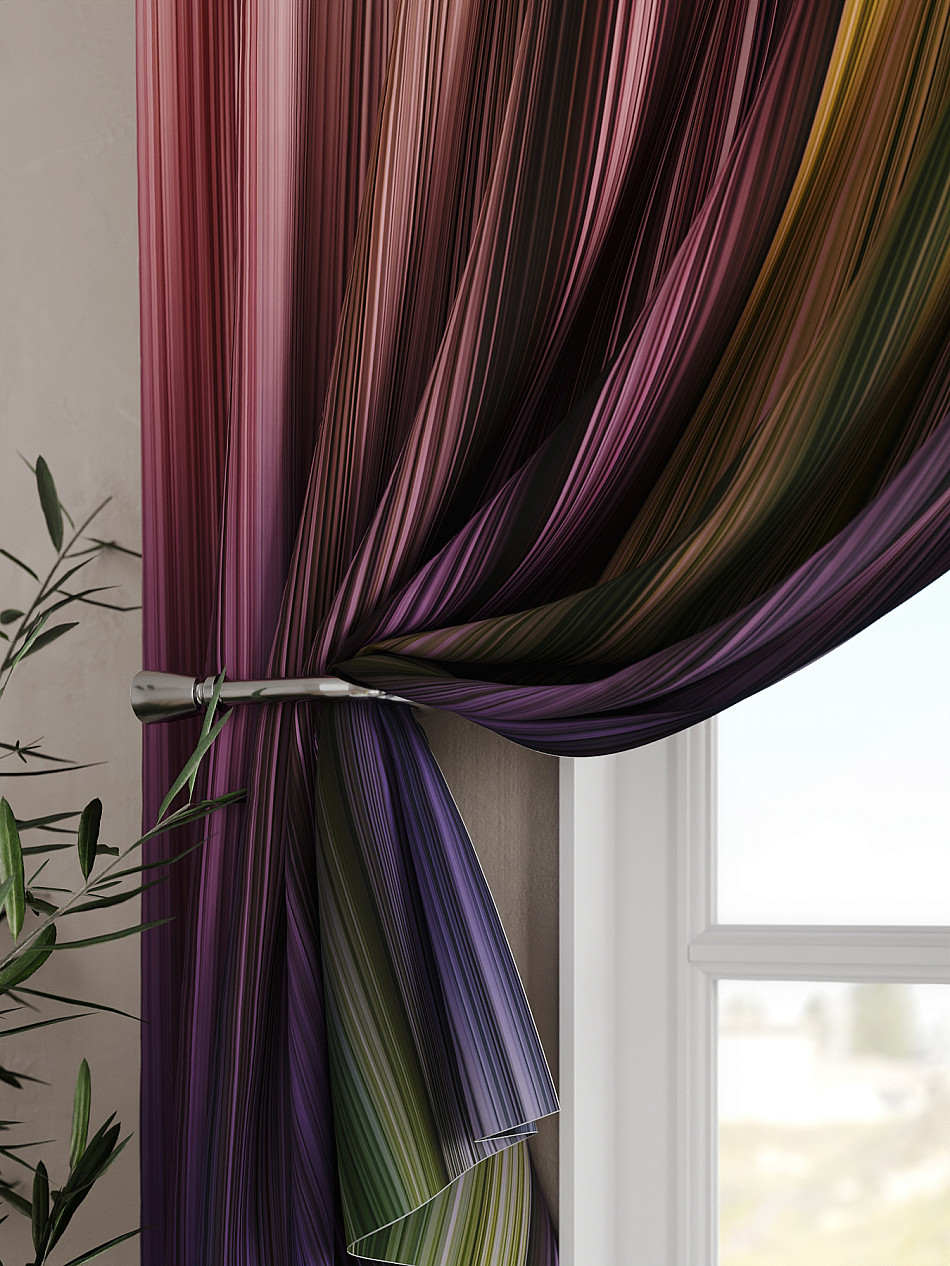 По верхнему краю портьер пришита шторная тесьма 6 см, с ее помощью затянув узелки от кордовых нитей с обеих сторон и стянув их до нужного размера можно сформировать округлые складки, далее вставить крючки в кармашки и повесить на карниз. Обязательно проверьте кордовые нити – они должны быть надежно завязаны, в противном случае во время стягивания они могут вылететь. Шторная тесьма имеет два ряда кармашков, с их помощью можно регулировать не только длину, но и ширину. Такое крепление подходит для всех типов карнизов.