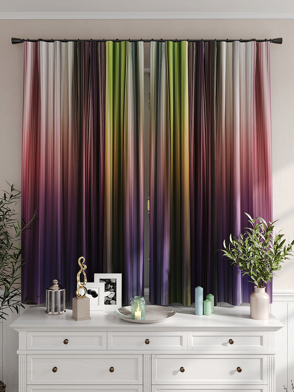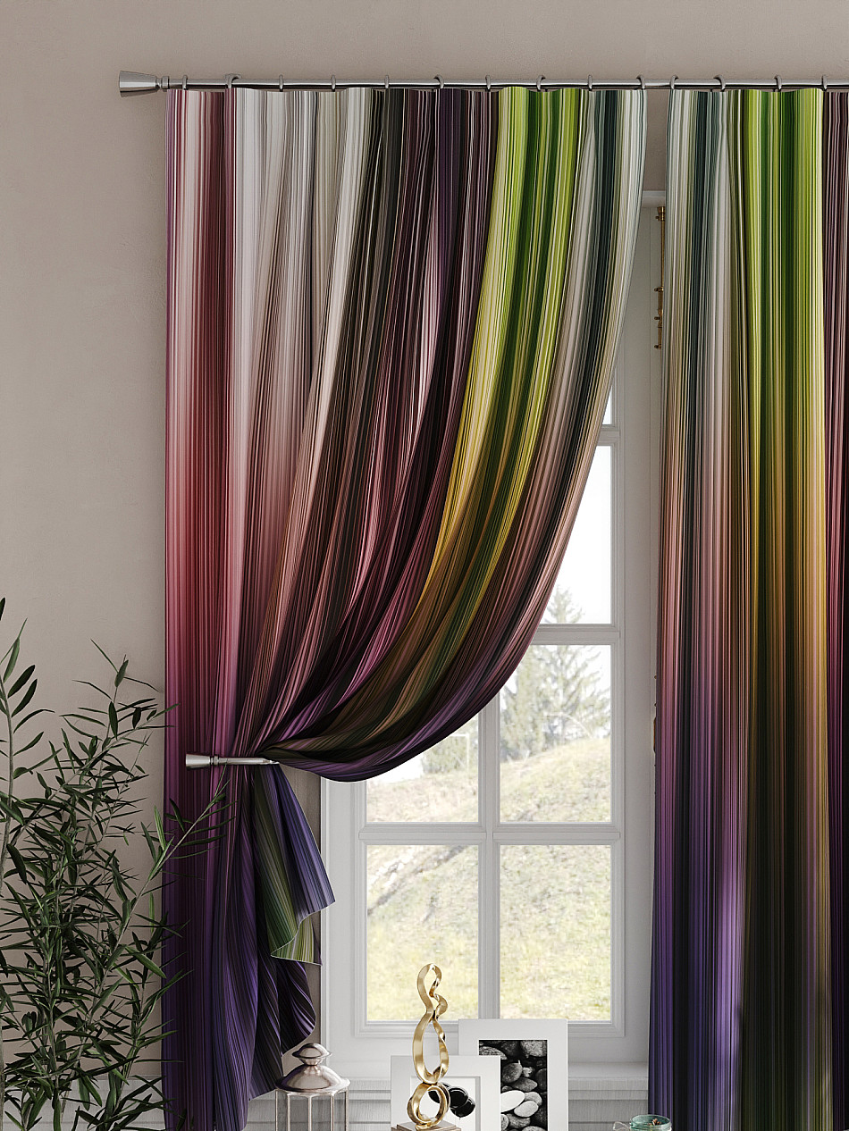 Портьеры 2 шт. Комплект штор из легкой портьерной ткани (габардин) оформлен печатным рисунком. Печатный рисунок дает широкие возможности обновить интерьер фактически не требуя ремонта за счет огромного выбора. Ткани с печатным рисунком безопасны и не содержат токсичных веществ. Не смотря на то, что материал легкий, он имеет высокую плотность, мало загрязнятся и не требует особого ухода даже после стирки, что важно для кухонных занавесок. Шторы не выцветают, не растягиваются, превосходно драпируются, образуя струящиеся складки. Прекрасное решение для создания красоты и уюта с помощью уникальных дизайнов.