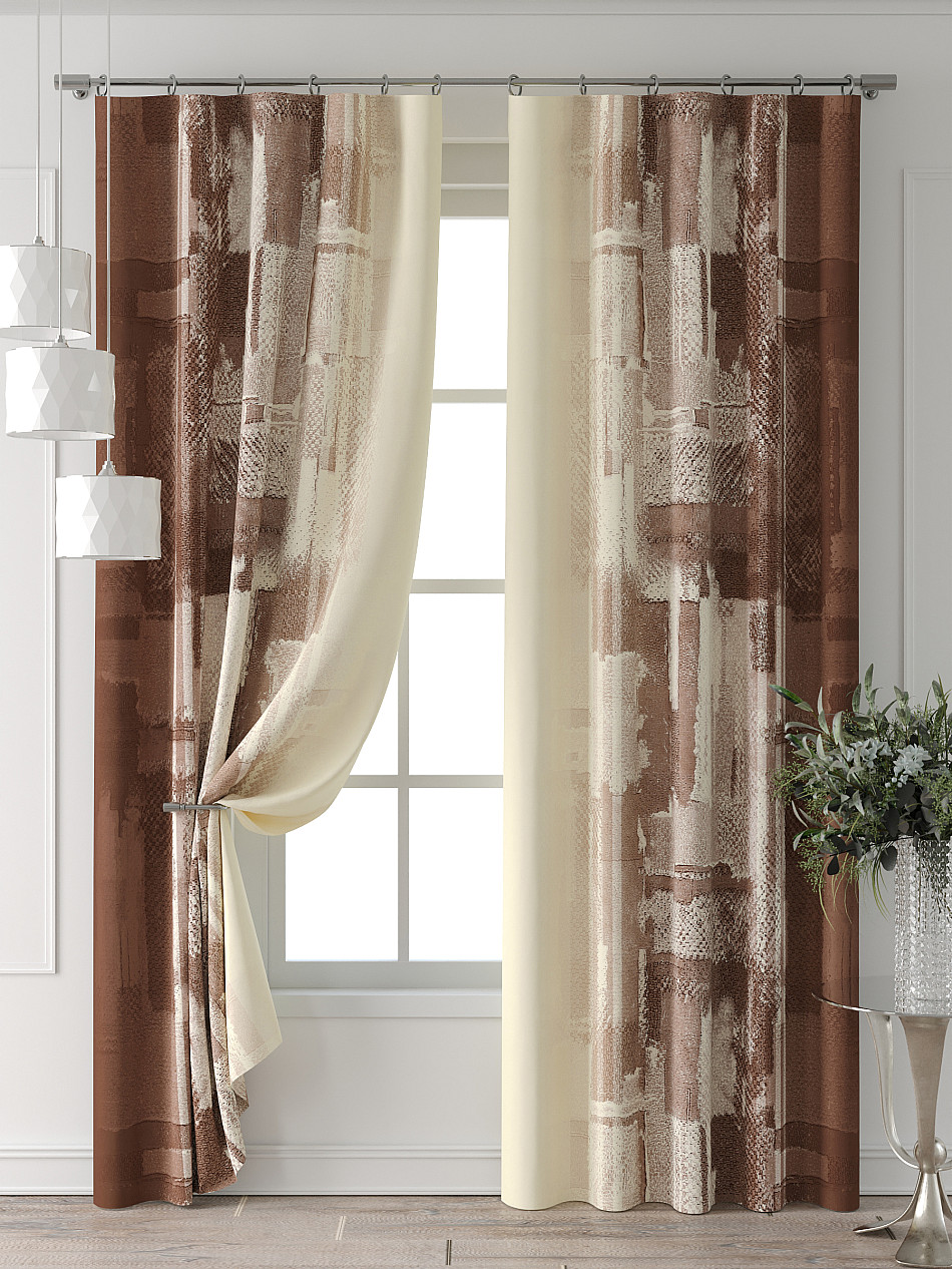 Портьера 150х240 см — 2 шт. ( Изменить высоту) Крепление: шторная лента (крючки), кулиска Подробнее