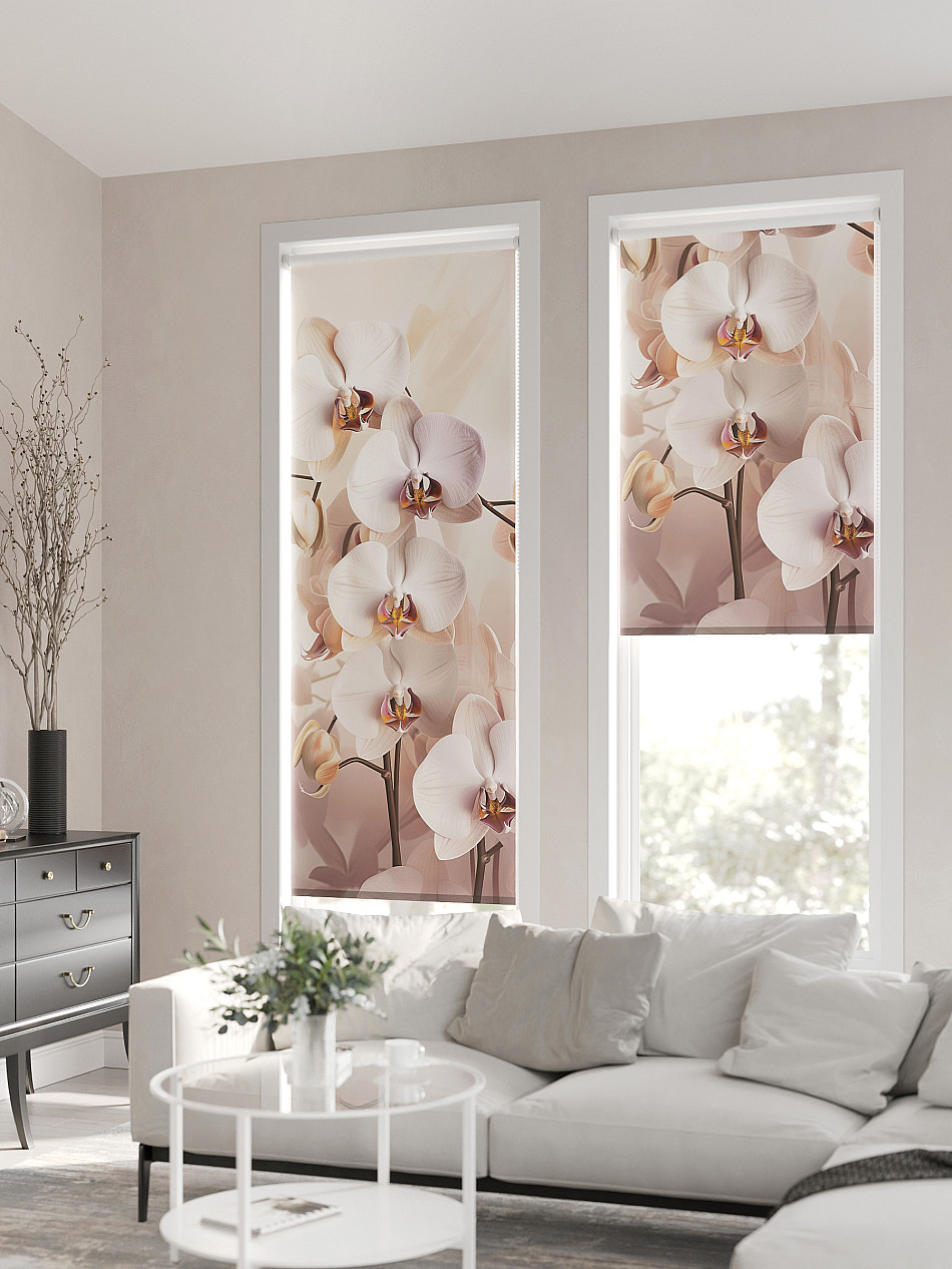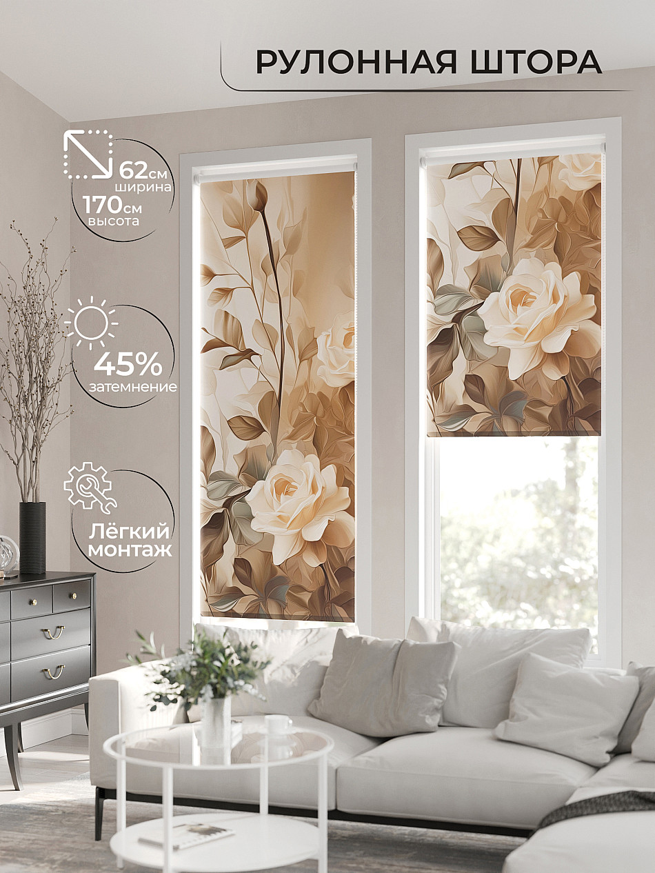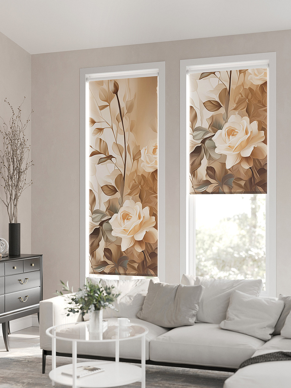 - Бежевые рулонные шторы