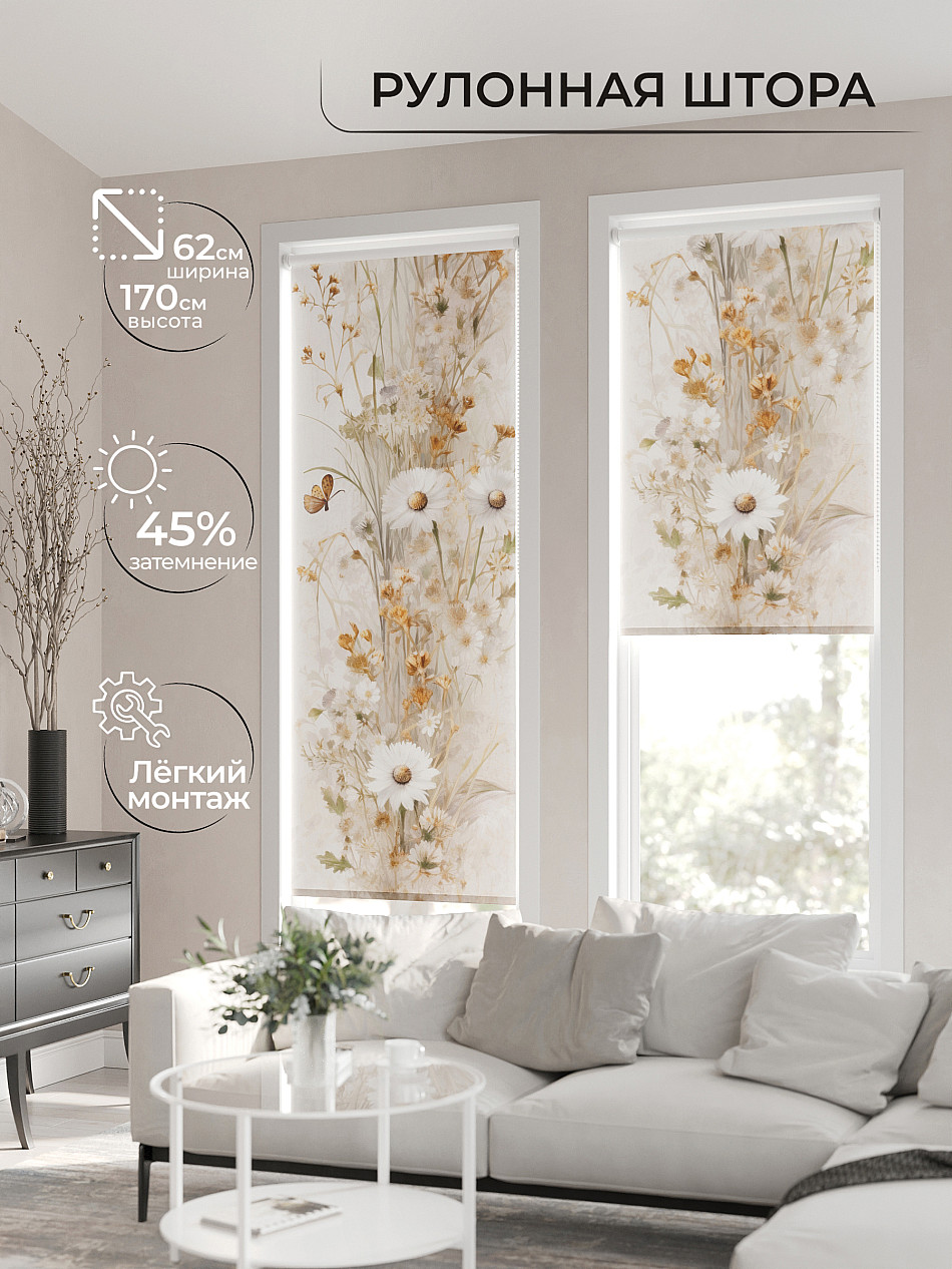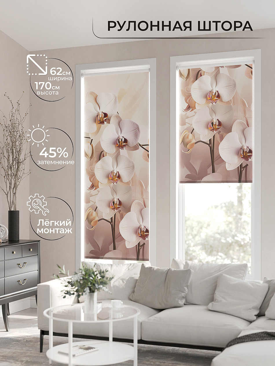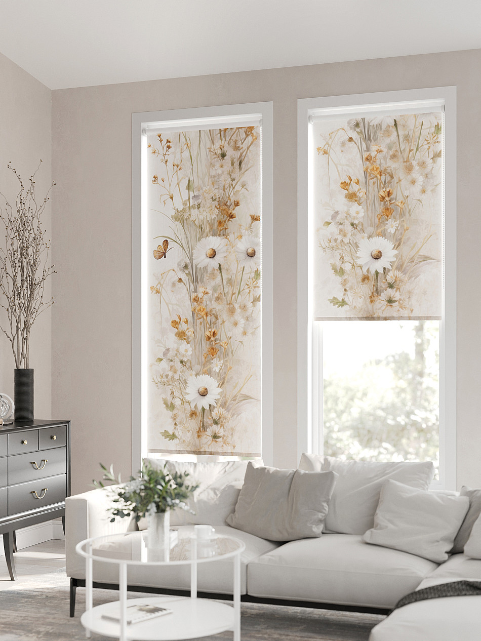 - Бежевые рулонные шторы