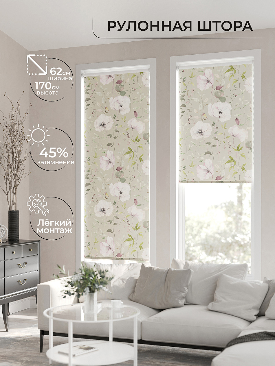 - Бежевые рулонные шторы