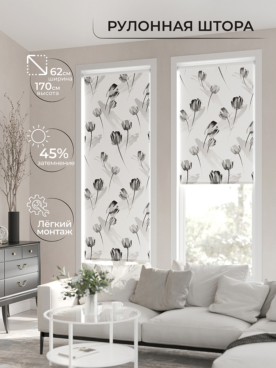 - Серые рулонные шторы