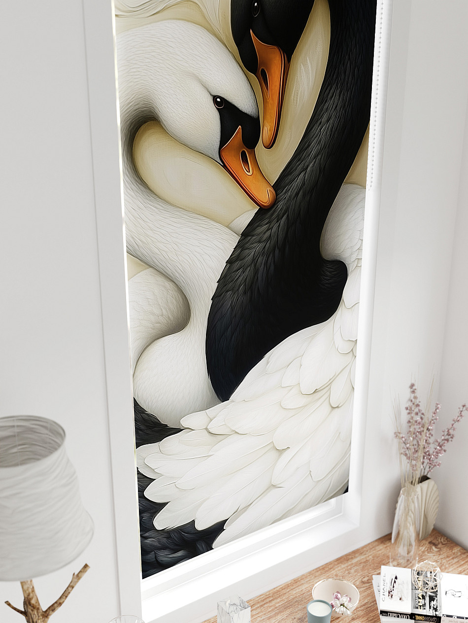 Рулонная штора – это ровное полотно материи, которое сворачивается в небольшой валик с помощью специального механизма. Внизу полотна расположена планка-утяжелитель, благодаря чему штора легко опускается вниз и всегда остается в натянутом положении. Цепочный механизм, поднимающий ткань, располагается сбоку шторы и может быть размещен с любой стороны для удобства пользования.