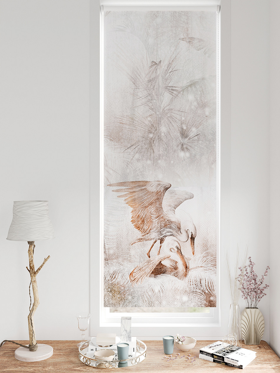 Рулонная штора – это ровное полотно материи, которое сворачивается в небольшой валик с помощью специального механизма. Внизу полотна расположена планка-утяжелитель, благодаря чему штора легко опускается вниз и всегда остается в натянутом положении. Цепочный механизм, поднимающий ткань, располагается сбоку шторы и может быть размещен с любой стороны для удобства пользования.