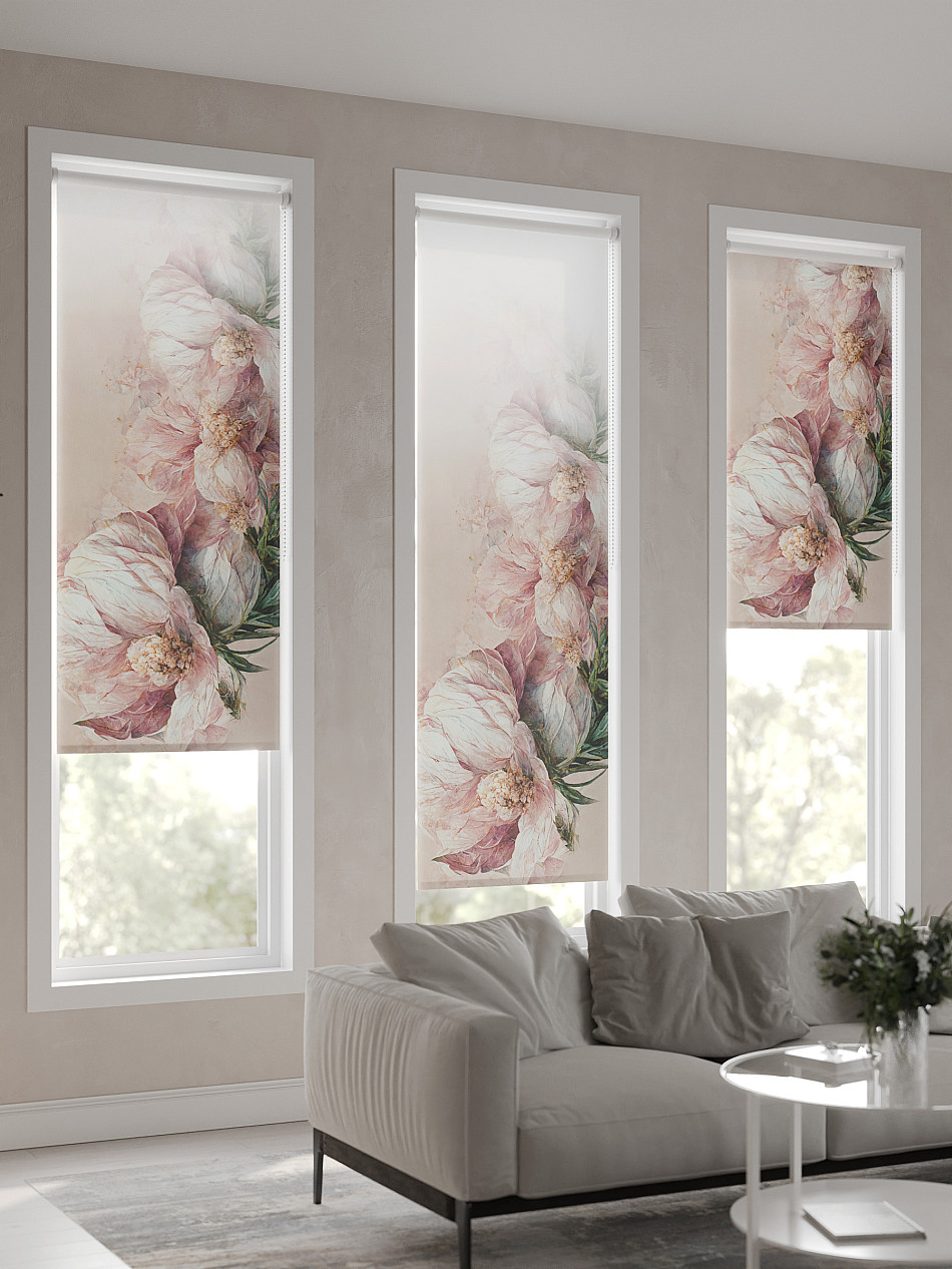 - Бежевые рулонные шторы