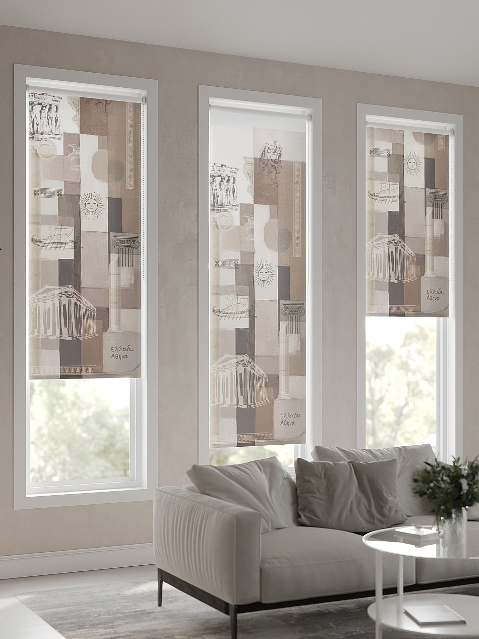 - Бежевые рулонные шторы