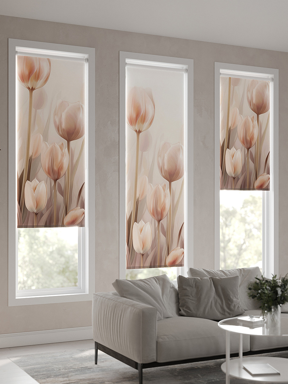 - Бежевые рулонные шторы