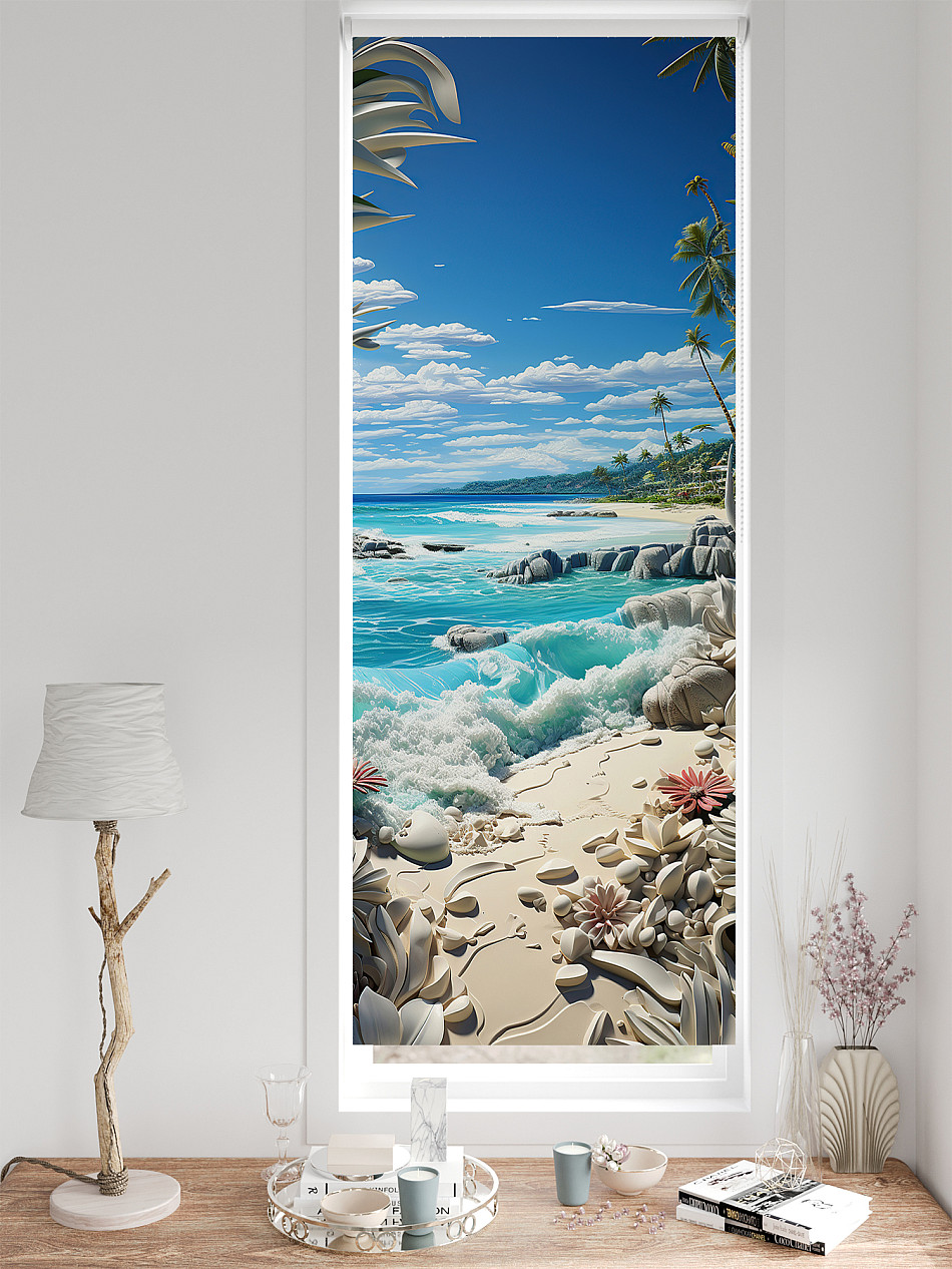 - Бежевые рулонные шторы