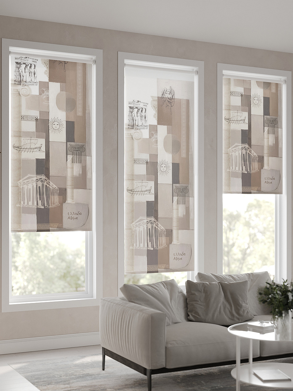 - Бежевые рулонные шторы