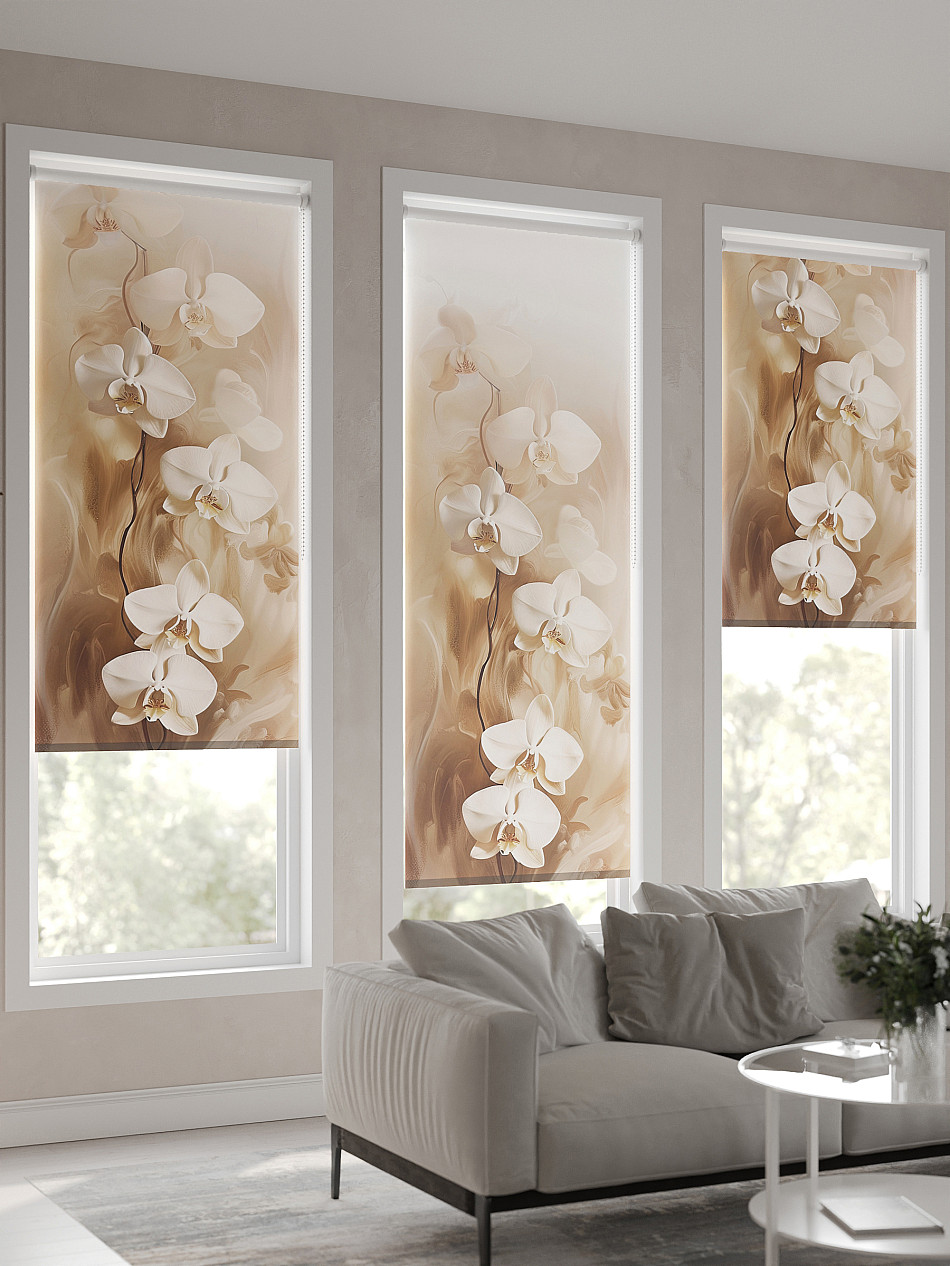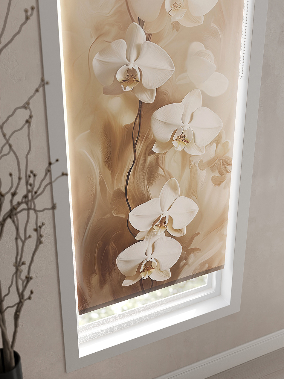 - Бежевые рулонные шторы