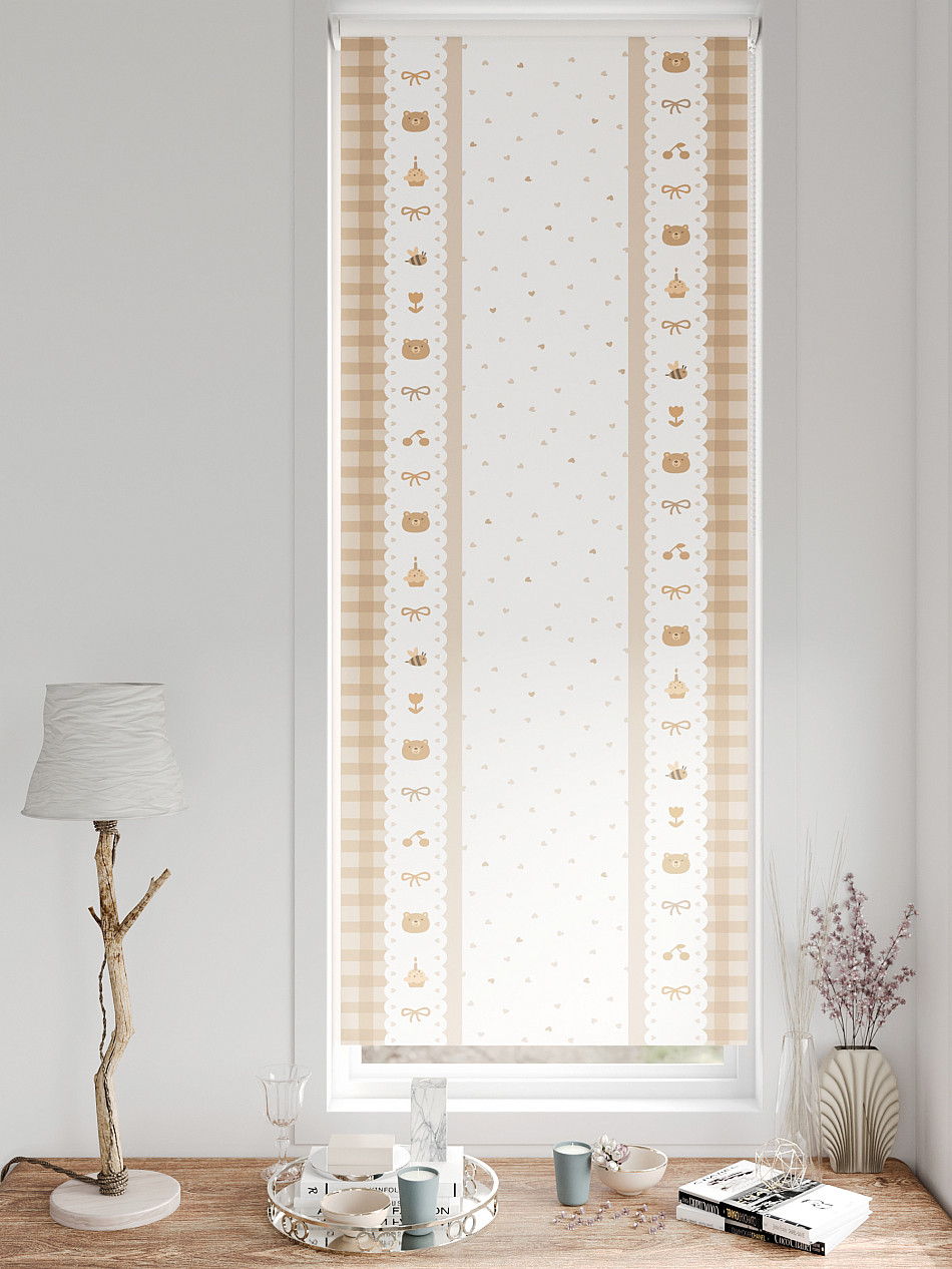 - Бежевые рулонные шторы