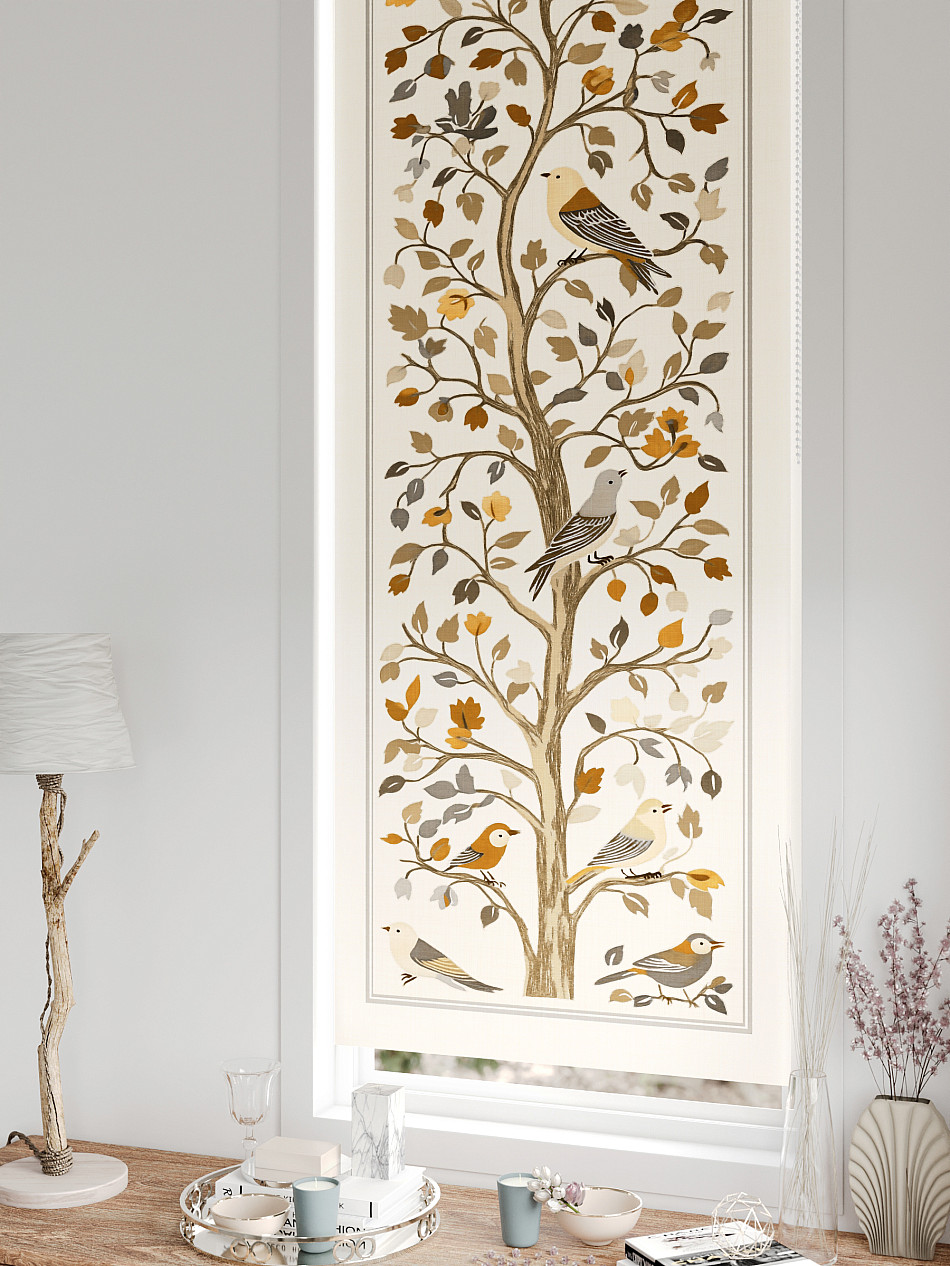 - Бежевые рулонные шторы