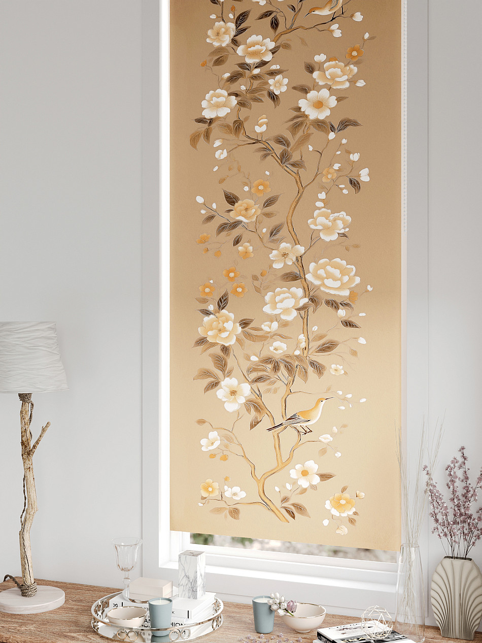 - Бежевые рулонные шторы