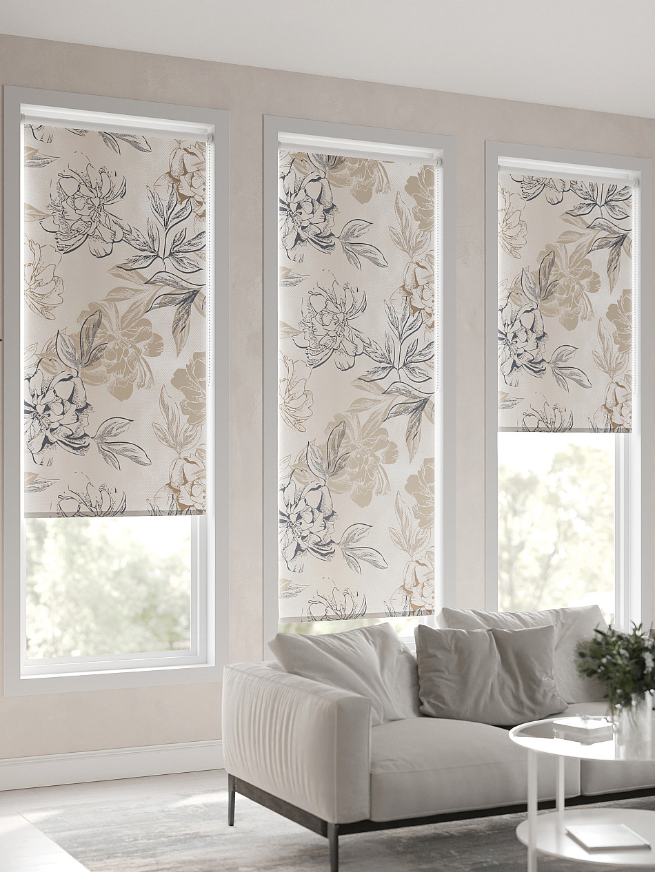 - Бежевые рулонные шторы
